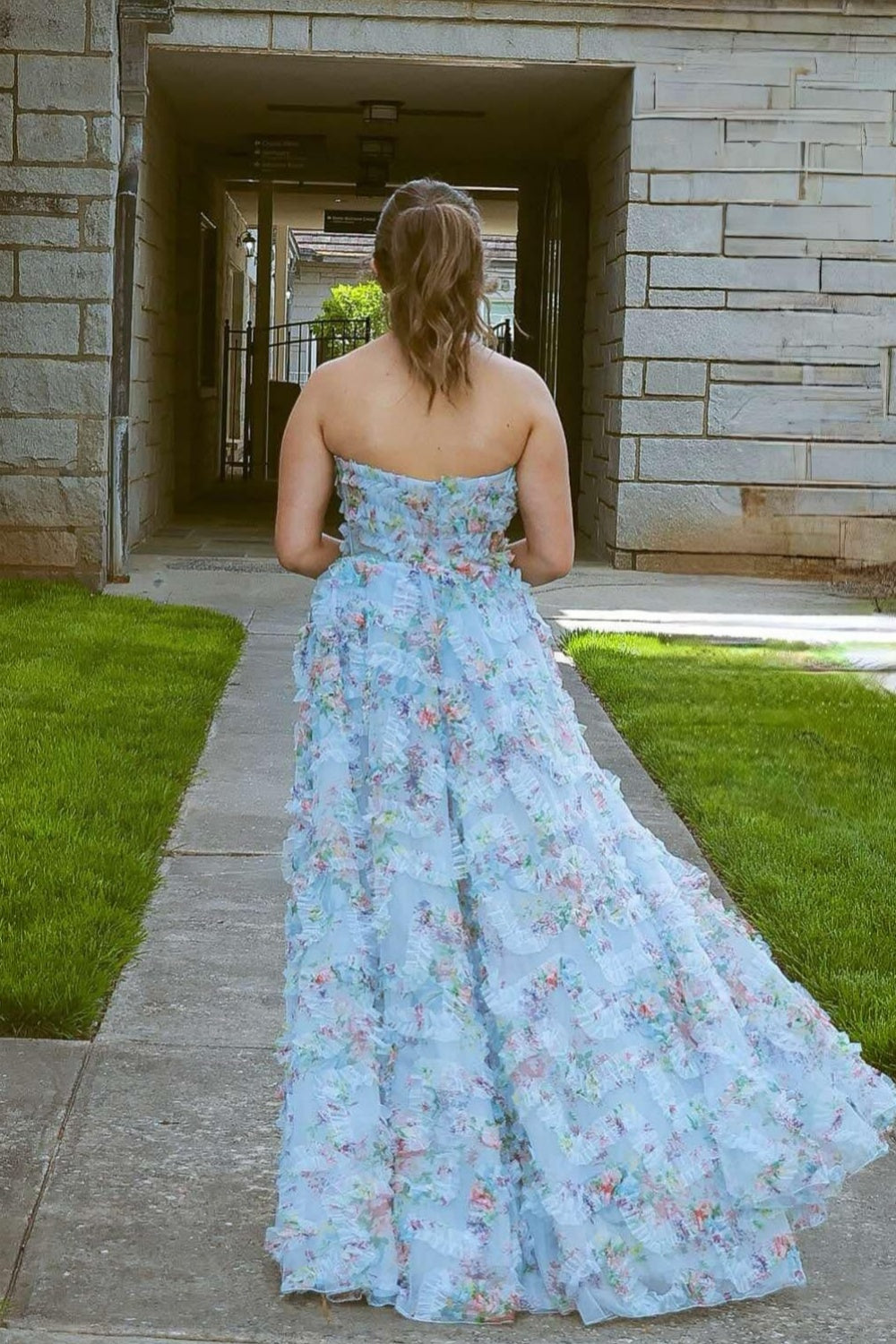 - Sheer bodice with floral print