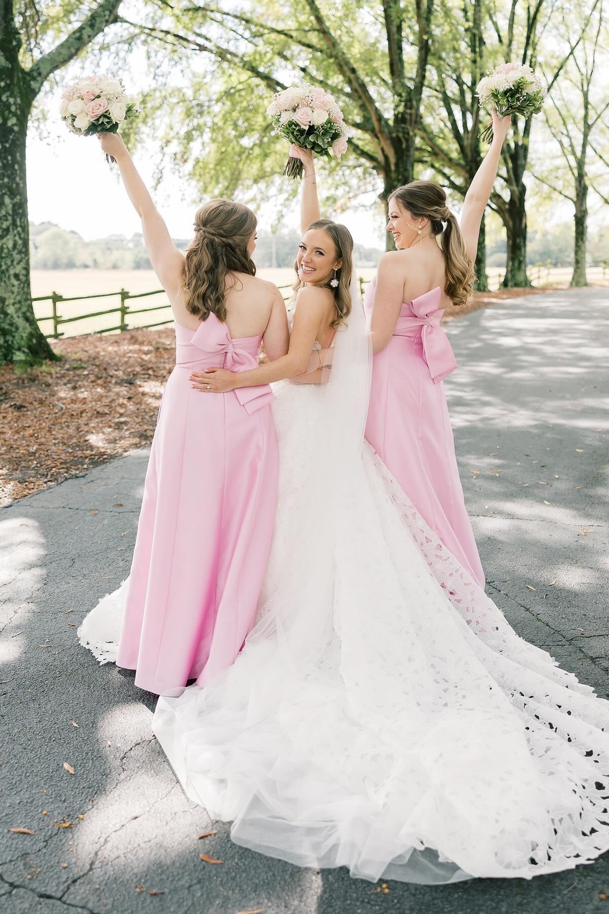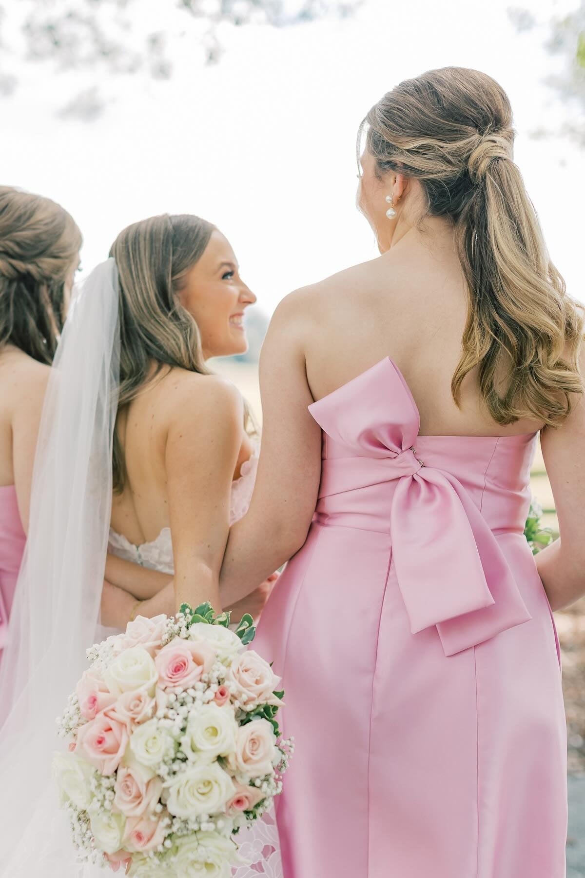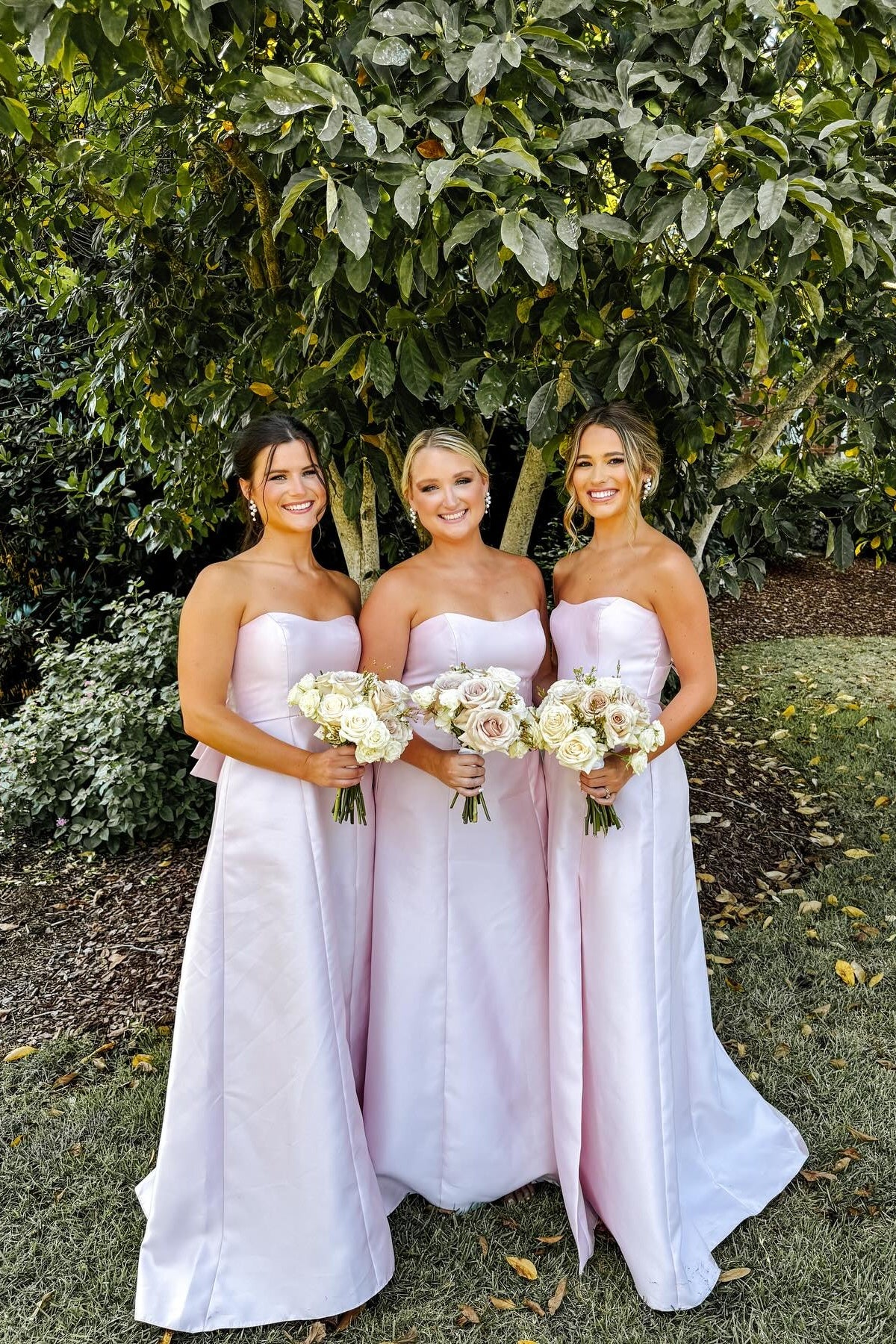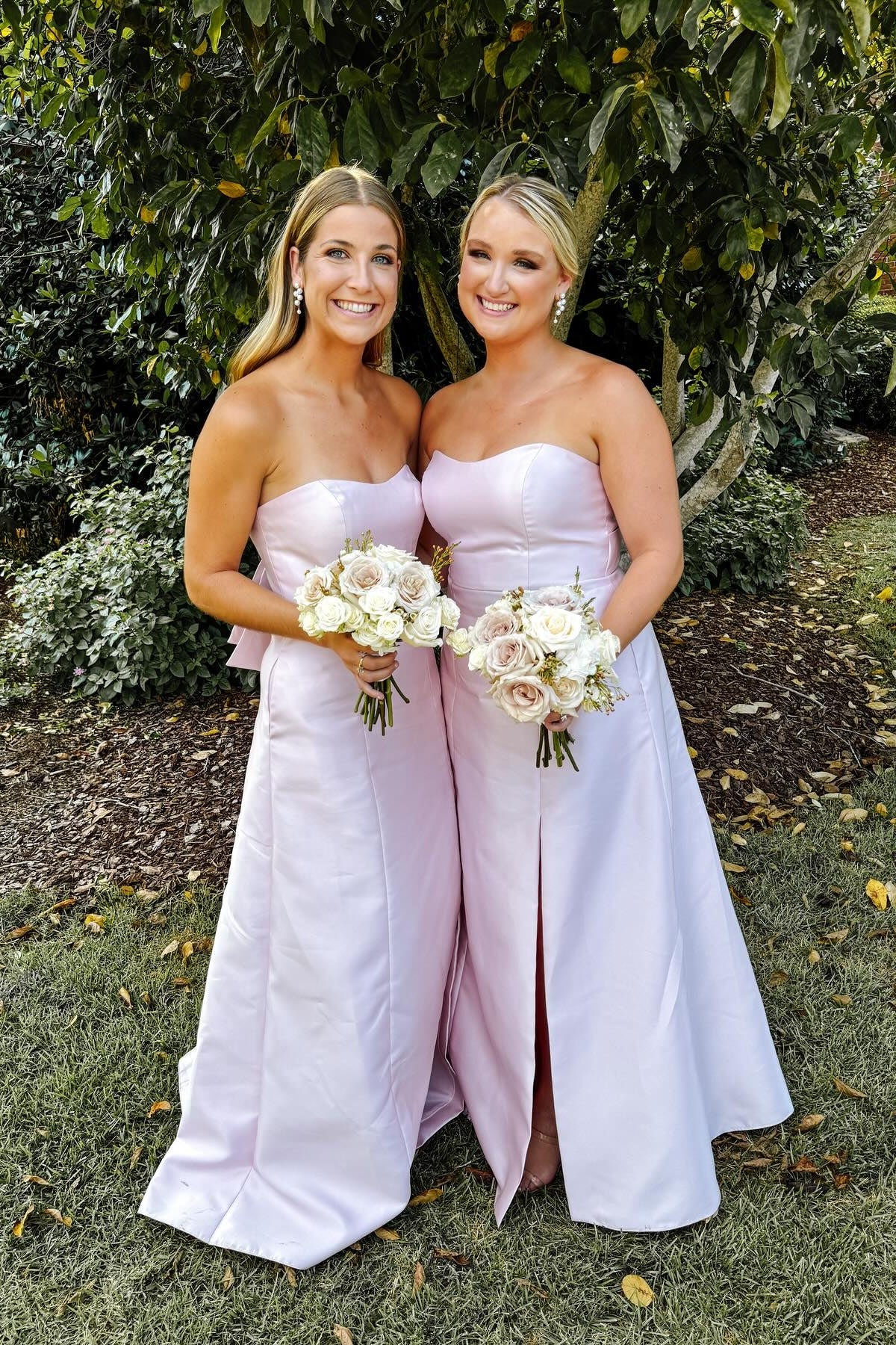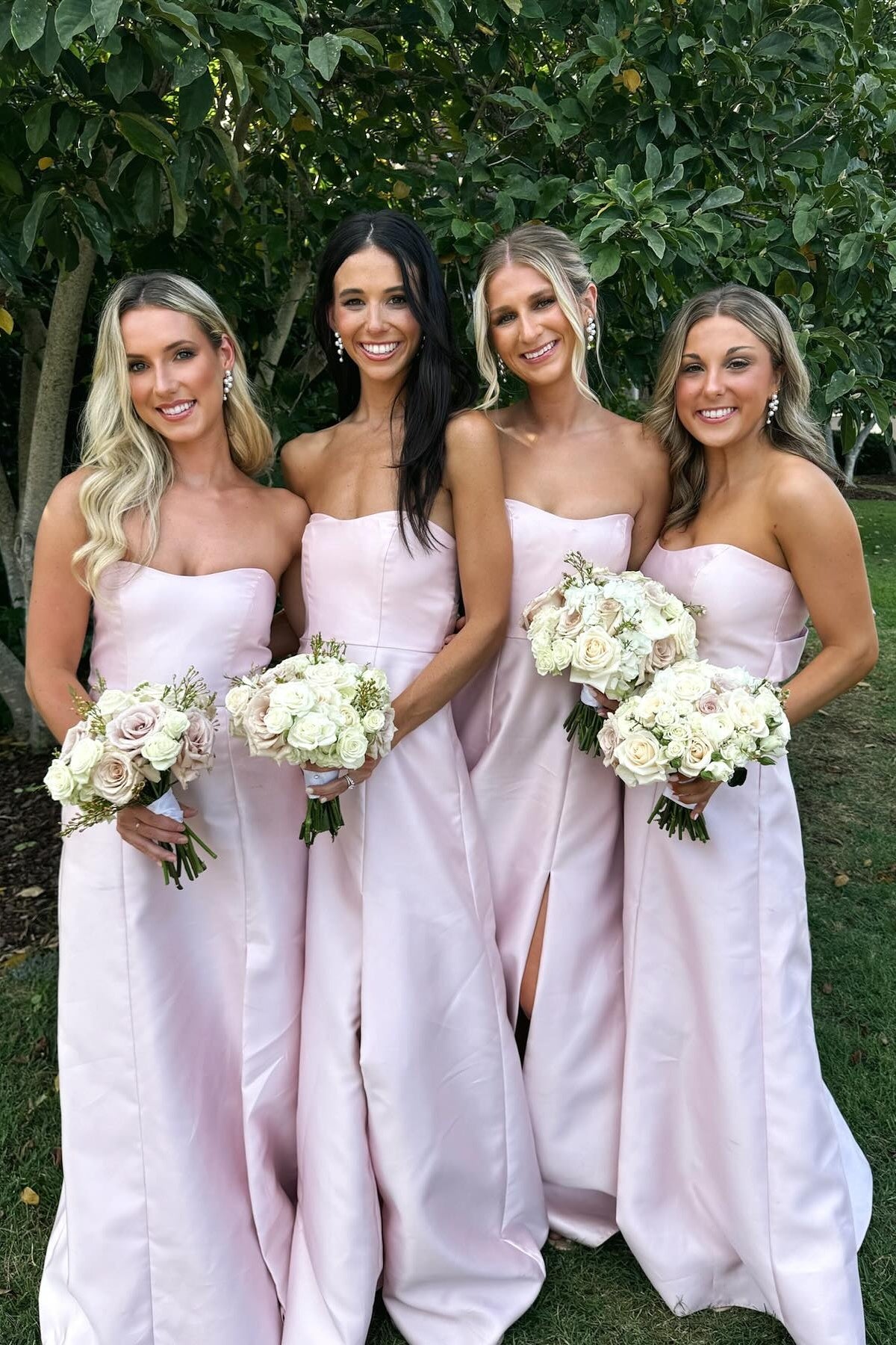 Strapless Pink Back Bow Bridesmaid Dress with Slit