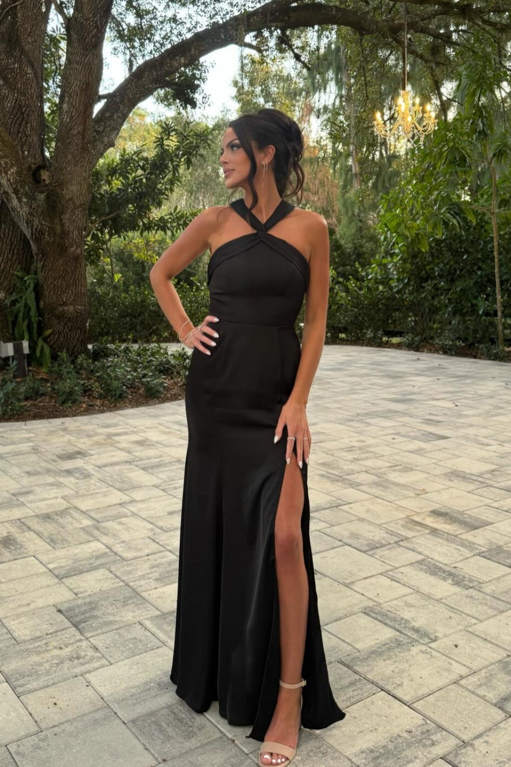 V-neck Black Twist Bridesmaid Dress with Slit
