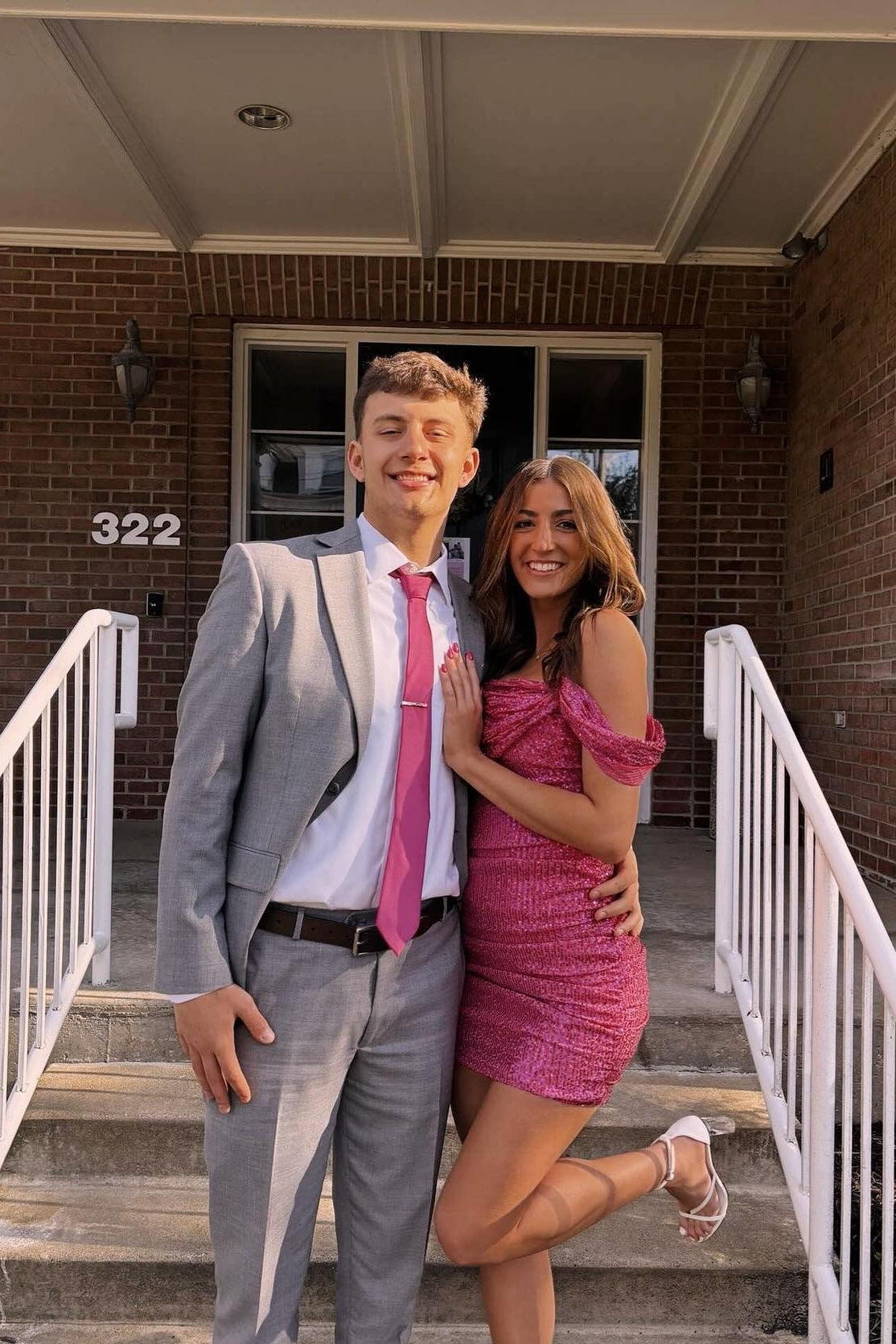Off the Shoulder Pink Ruched Sequin Short Dress