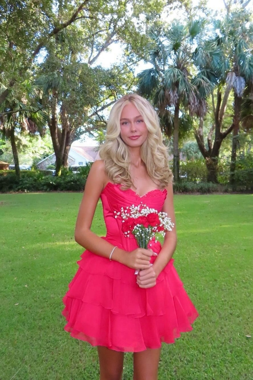 Strapless Yellow Appliques Neck Tiered Short Dress