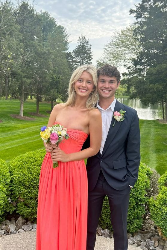 Strapless Coral Ruched Metallic A-line Long Dress