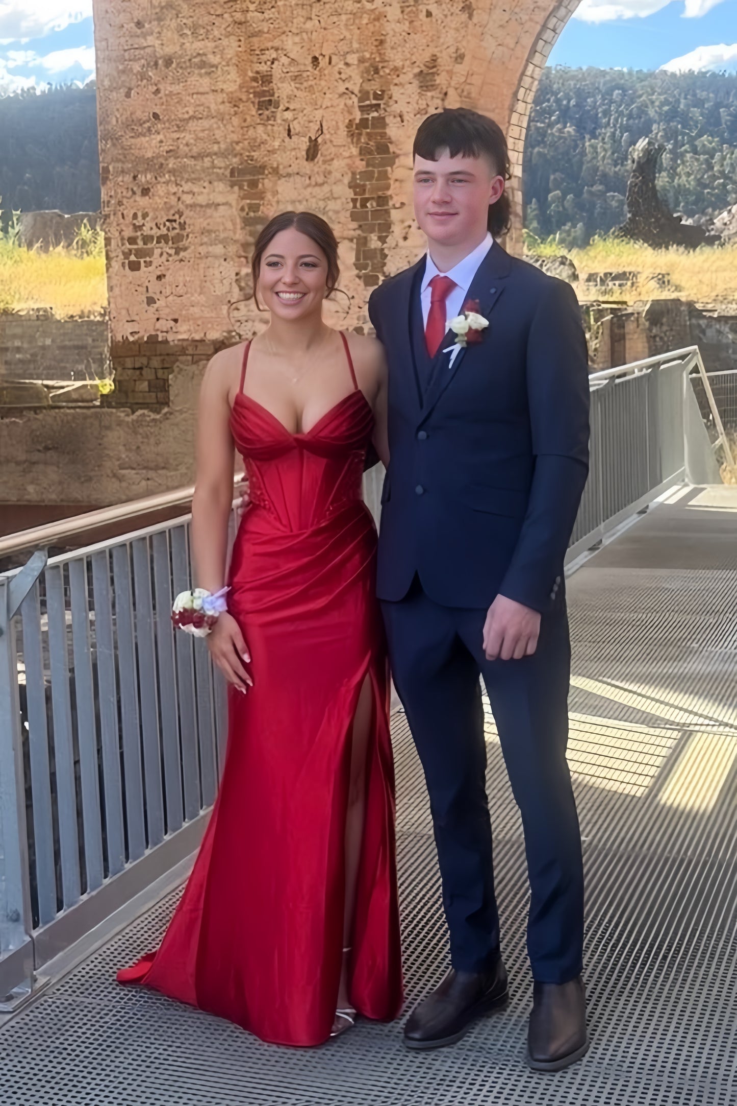 Straps Red Beaded Corset Mermaid Long Dress with Slit