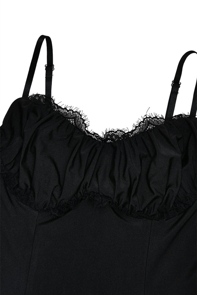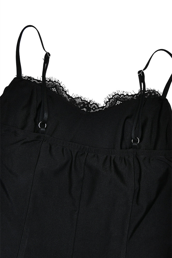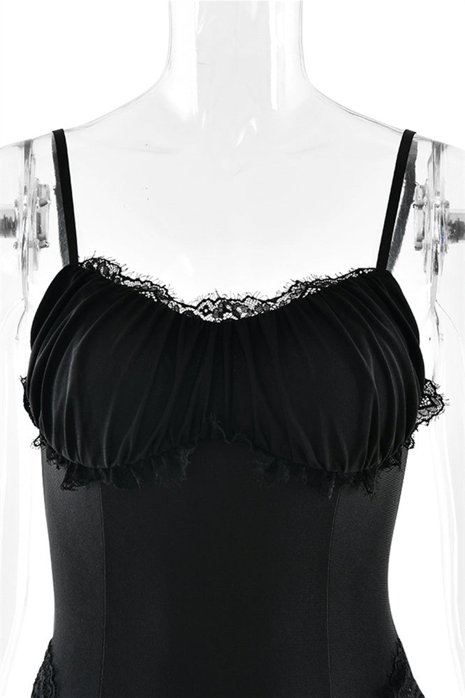 Spaghetti Straps Black Lace Trim Maxi Dress