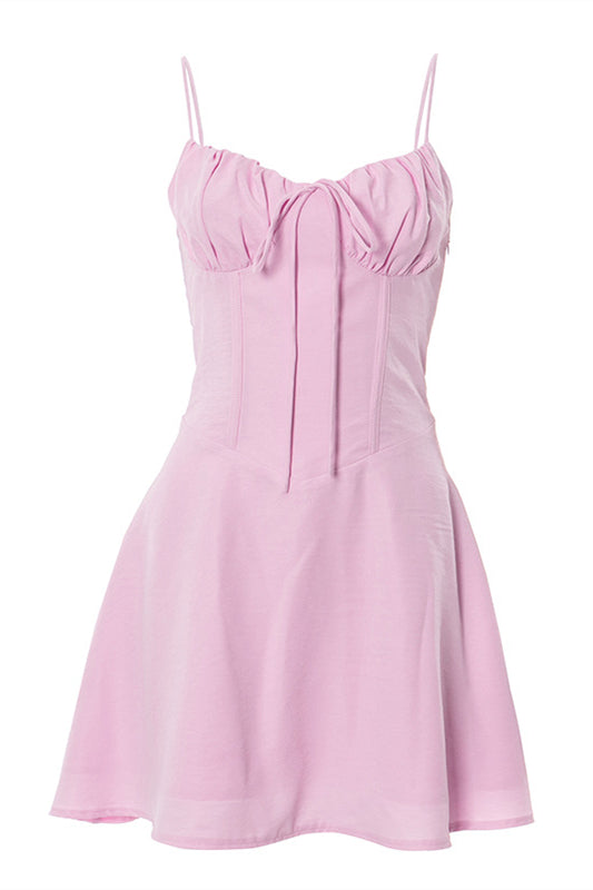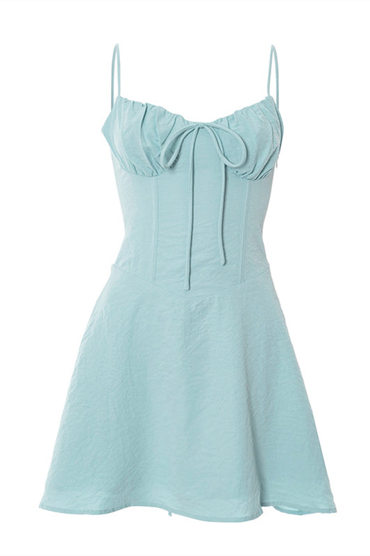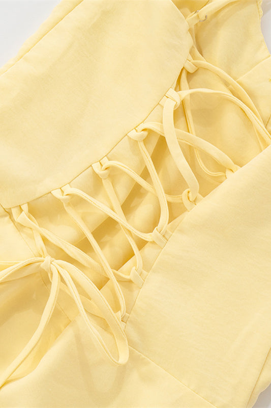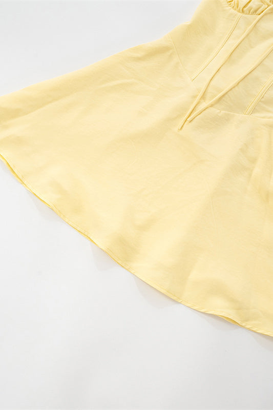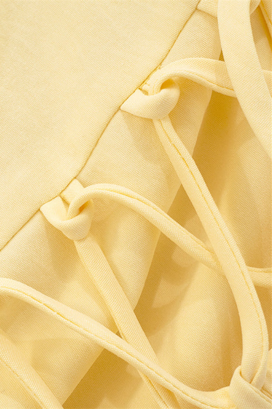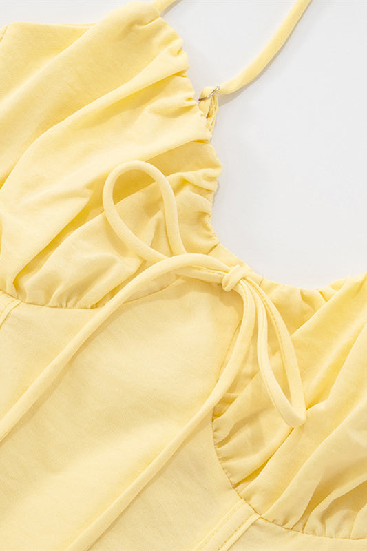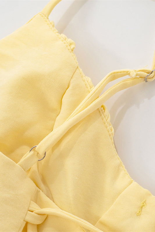 Spaghetti Straps Yellow Tie Front Short Dress