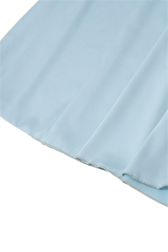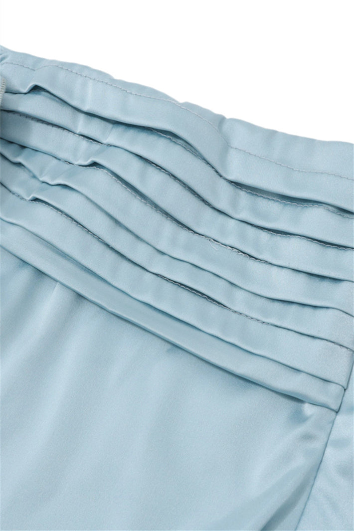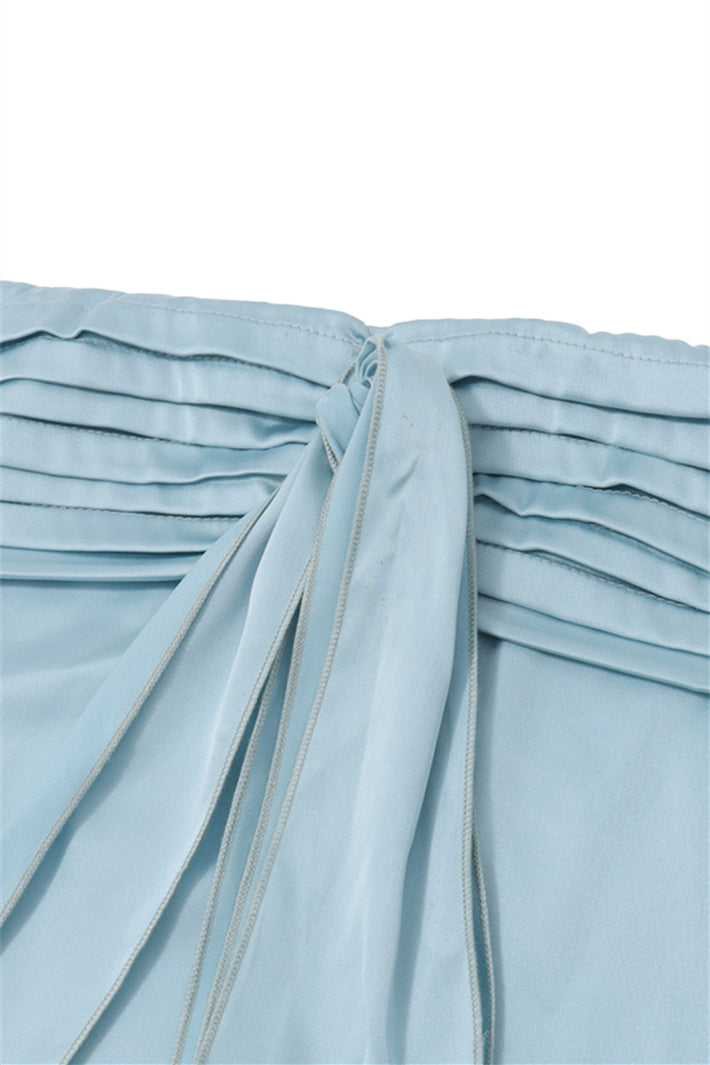 Strapless Blue Tie Front Pleated A-line Short Dress