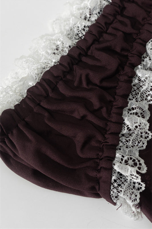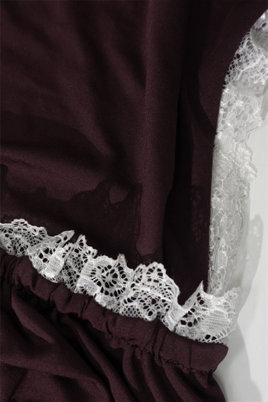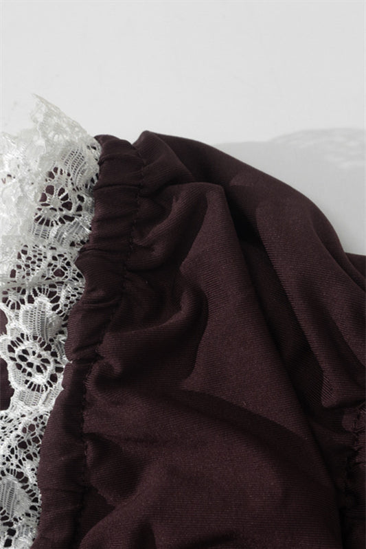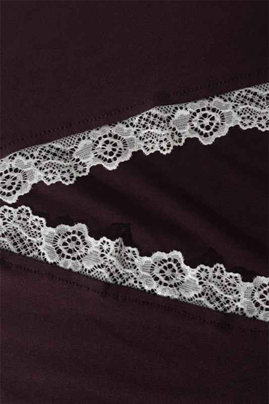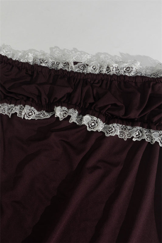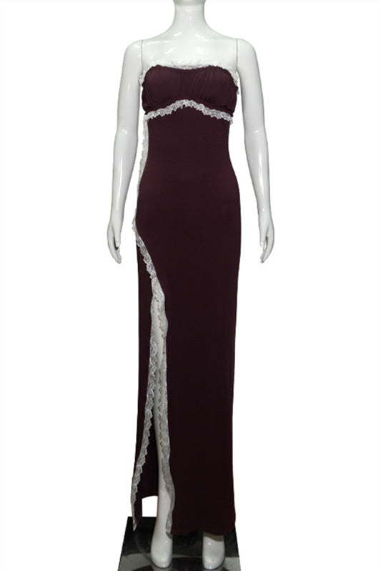 Strapless Deep Red Lace Trim Maxi Dress with Slit