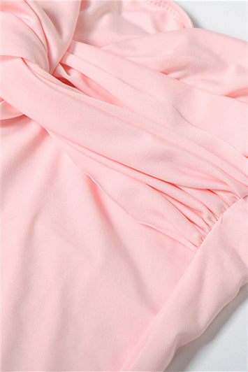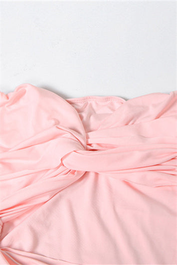 Strapless Pink Twist Maxi Dress with Slit