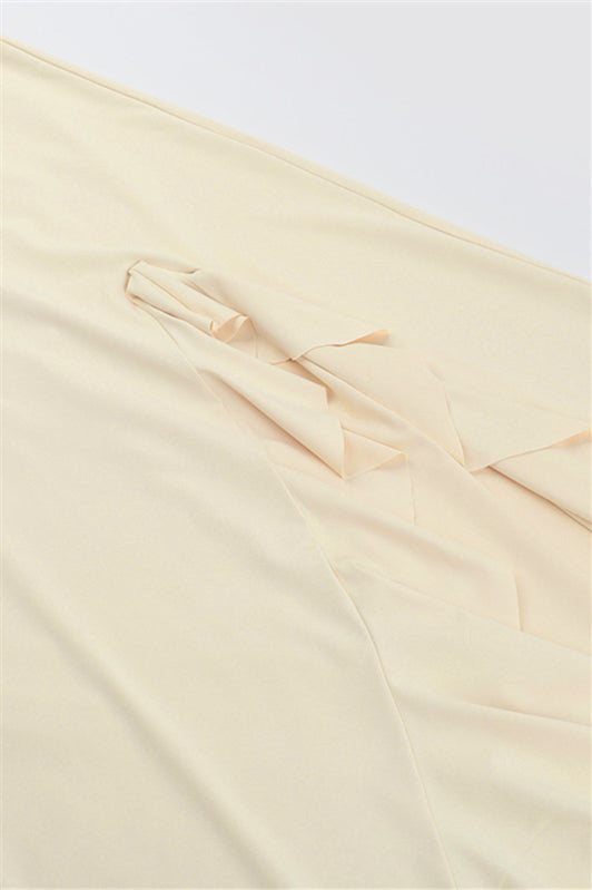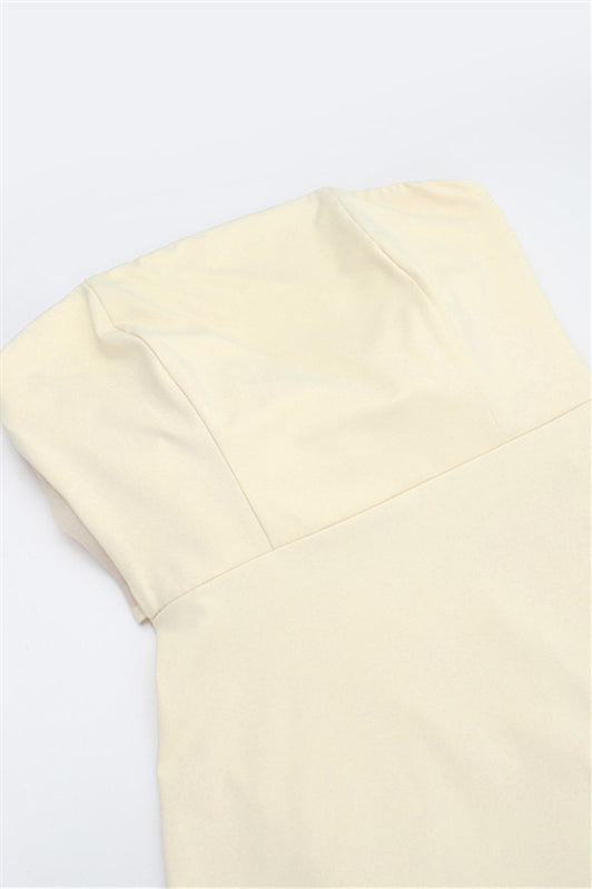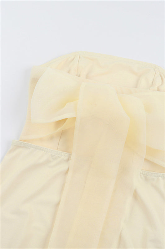 Strapless Yellow Ruffled Back Tie Maxi Dress with Slit