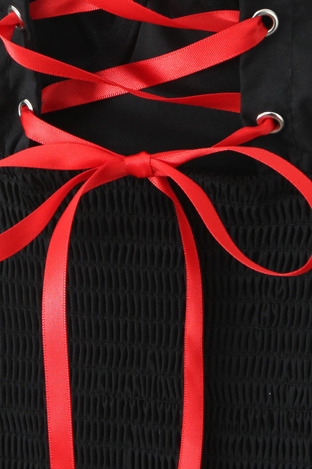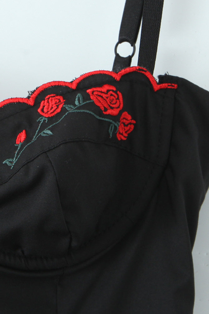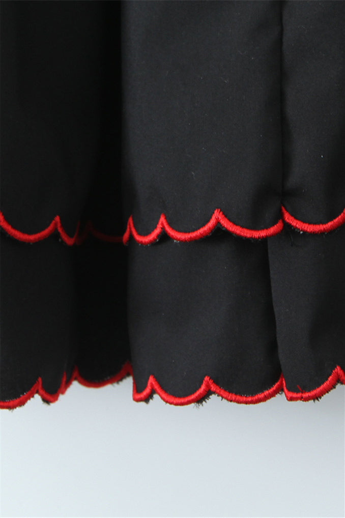 Straps Black Embroidery Ruffle Tiered Short Dress
