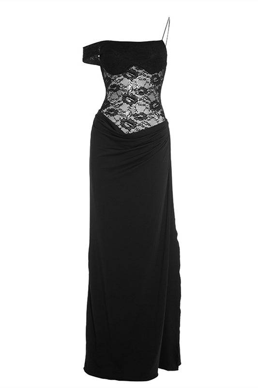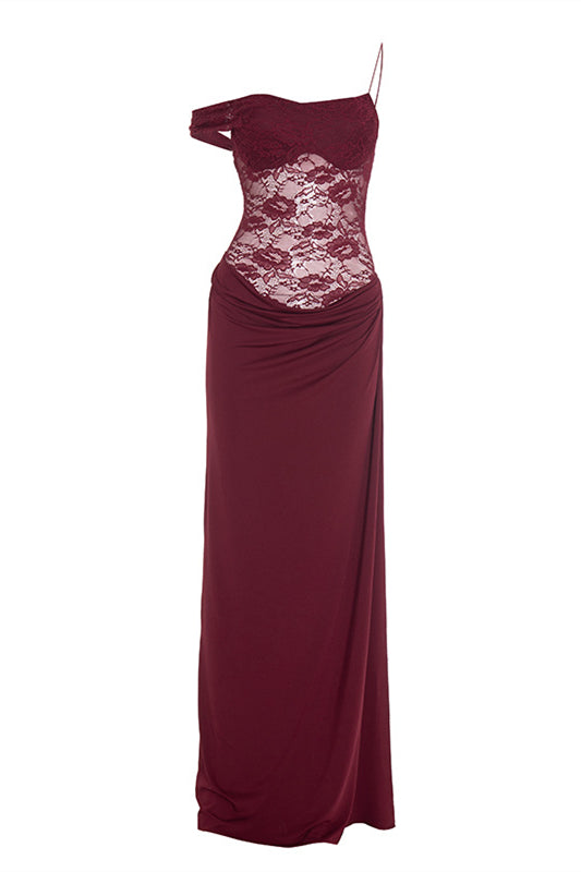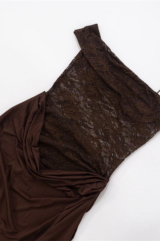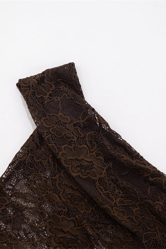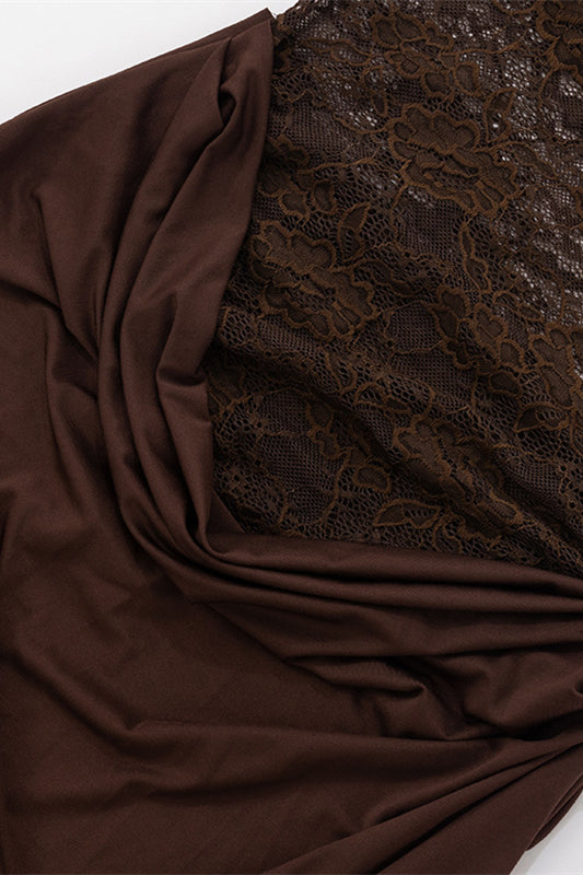 Straps Brown Lace Sheer Bodice Maxi Dress