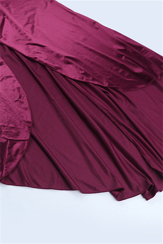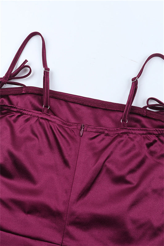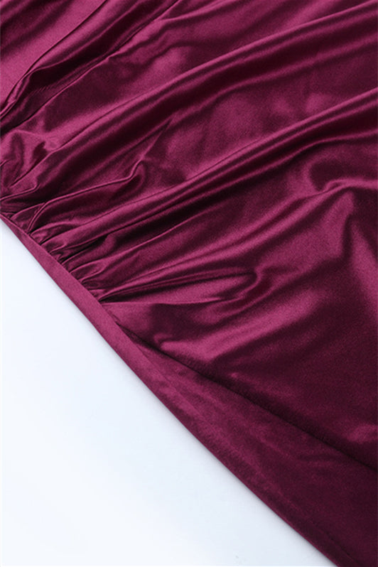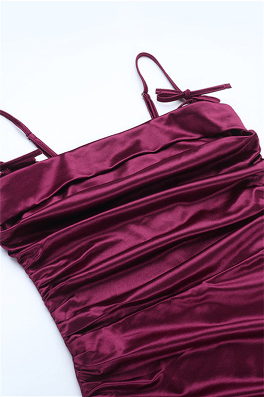 Straps Burgundy Ruched Mermaid Maxi Dress with Slit