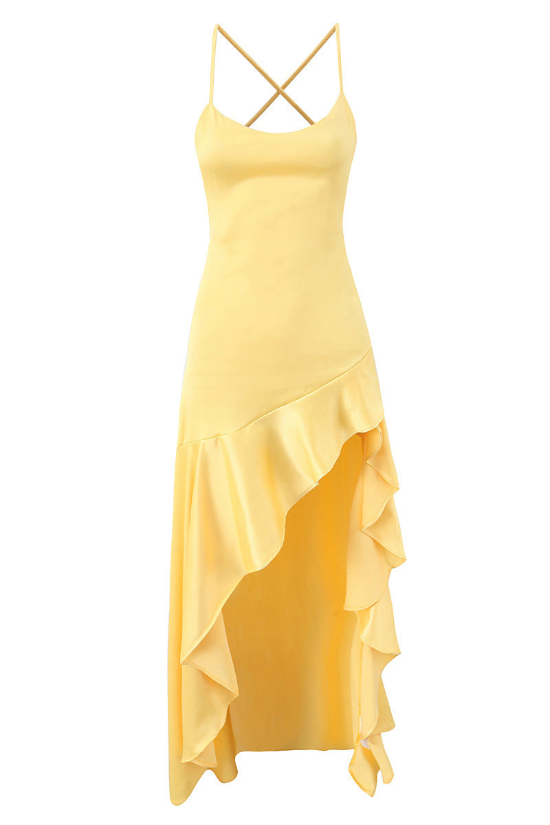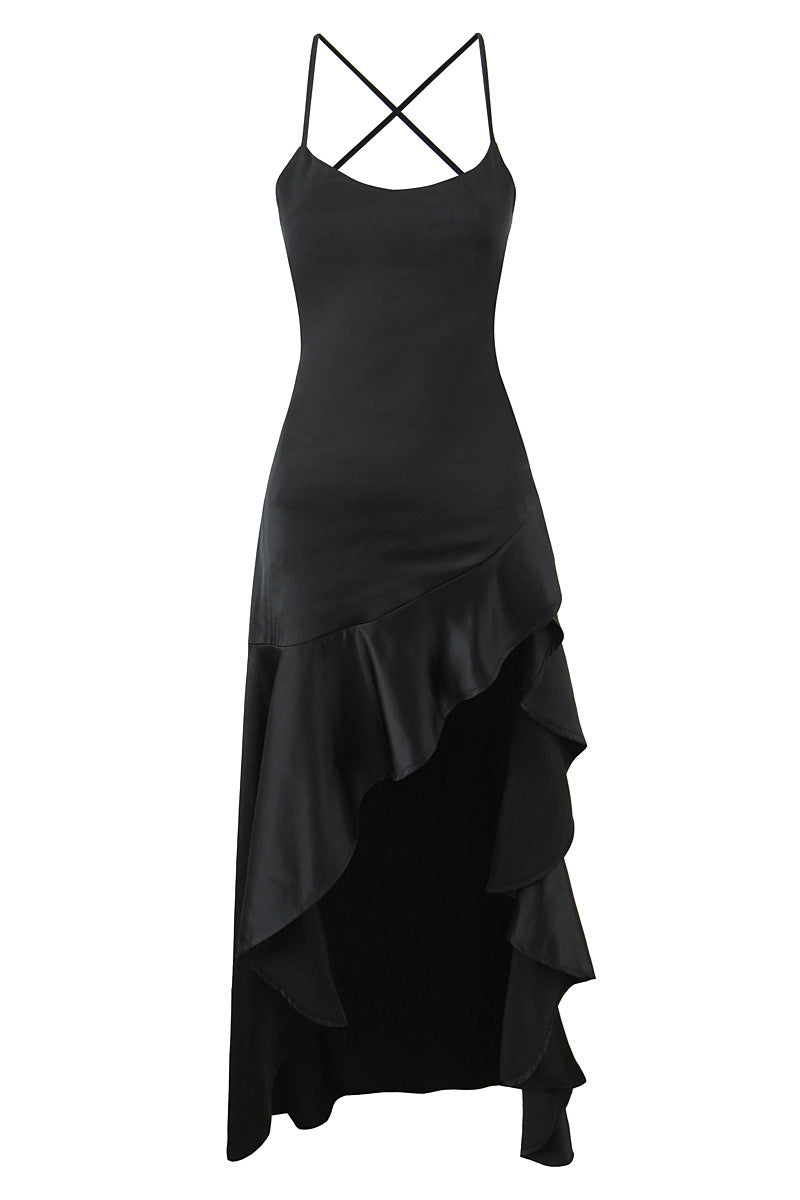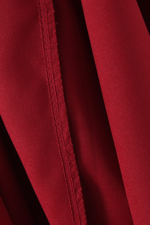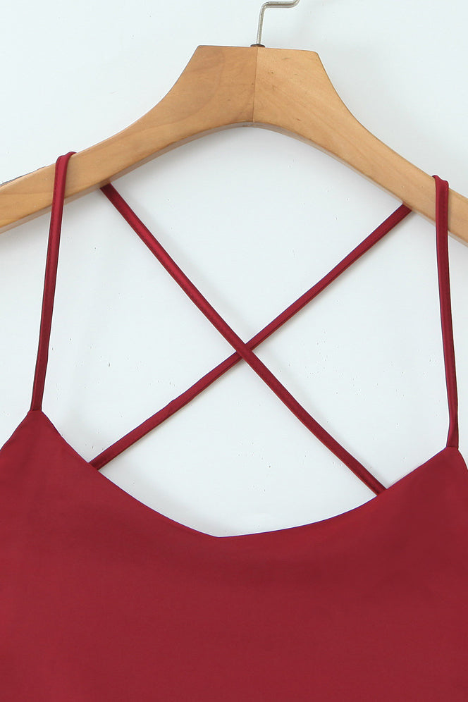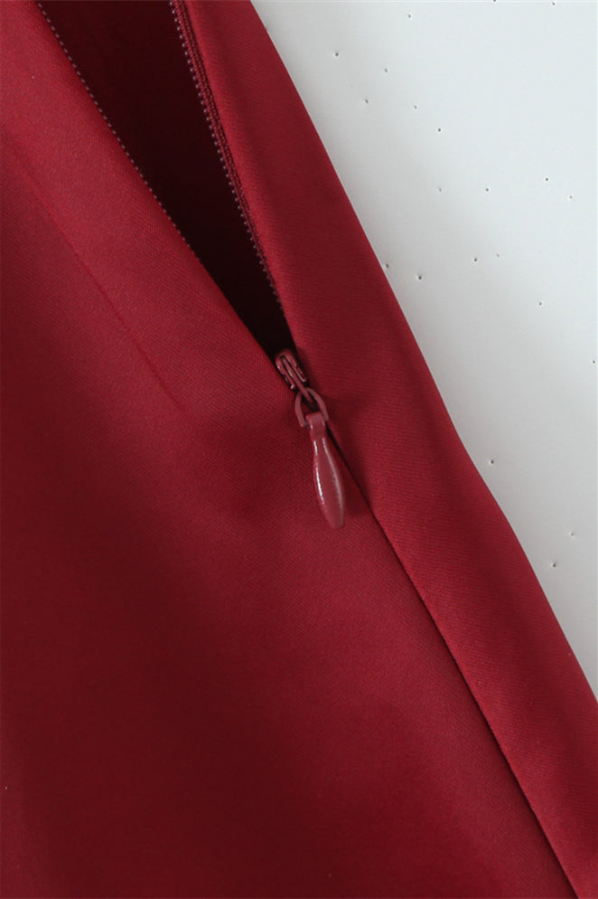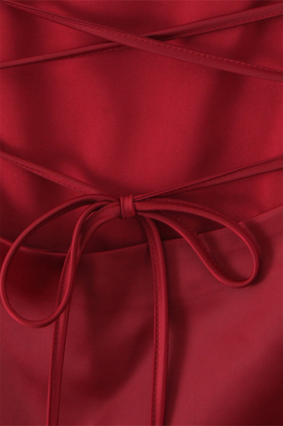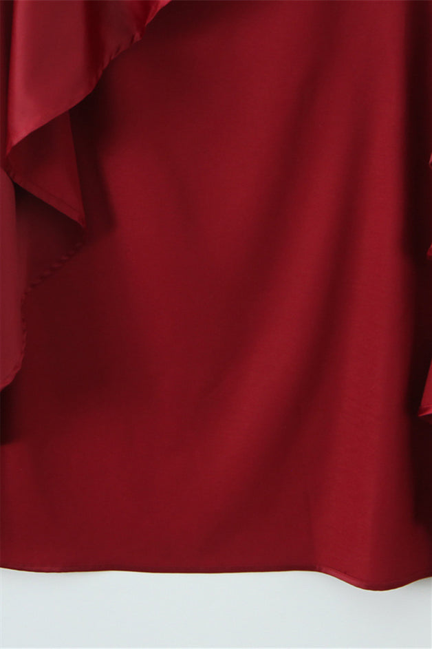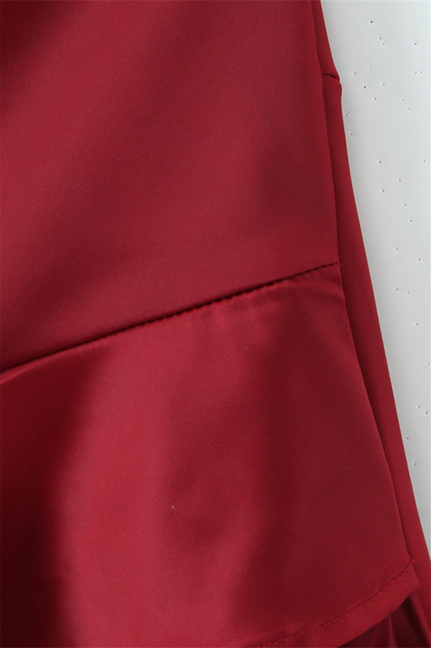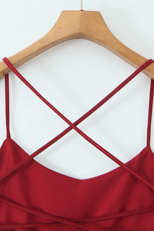 Straps Burgundy Ruffle Maxi Dress with Slit
