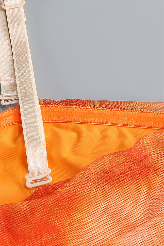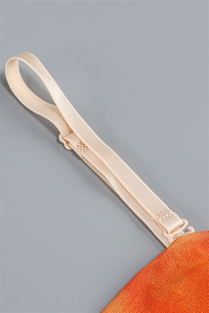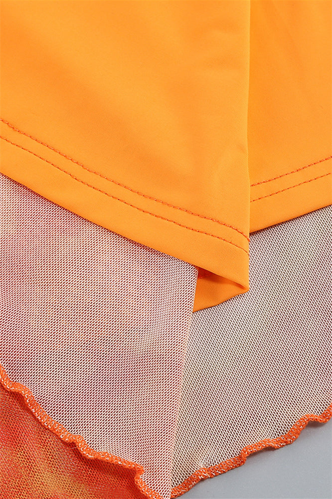 Straps Orange Floral Print Ruched Long Dress with Slit