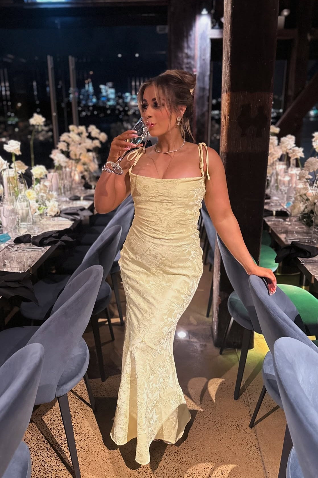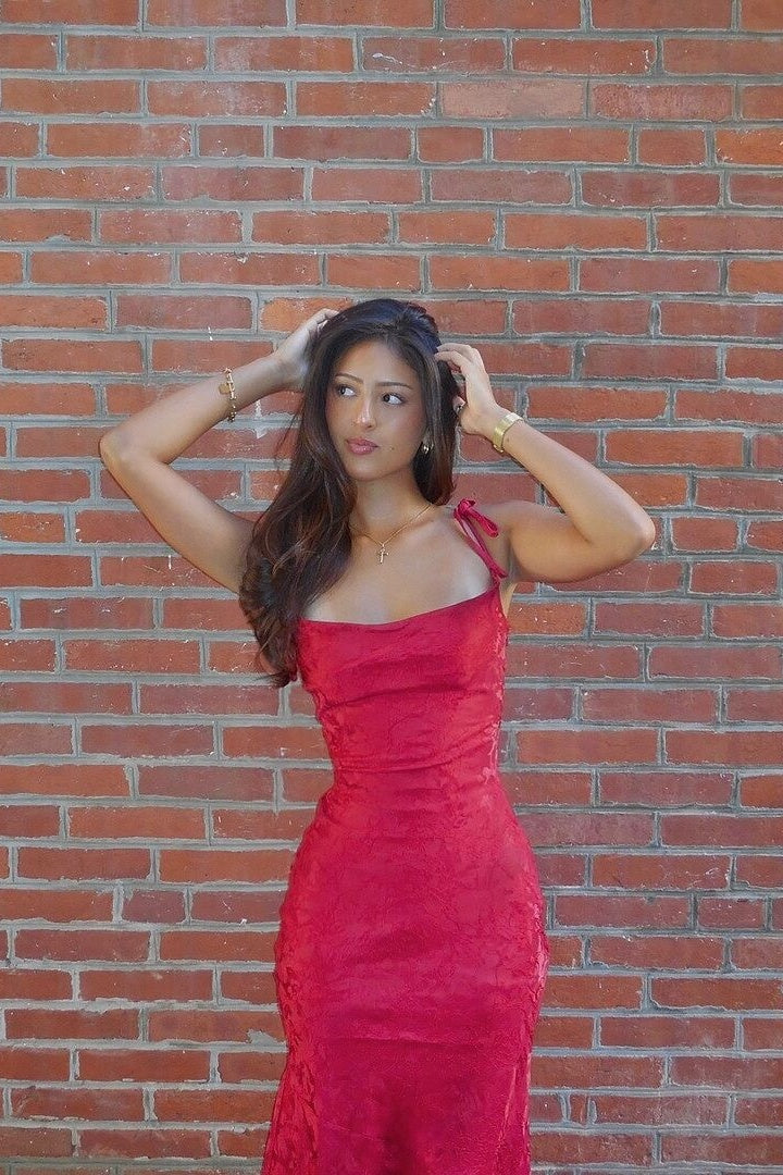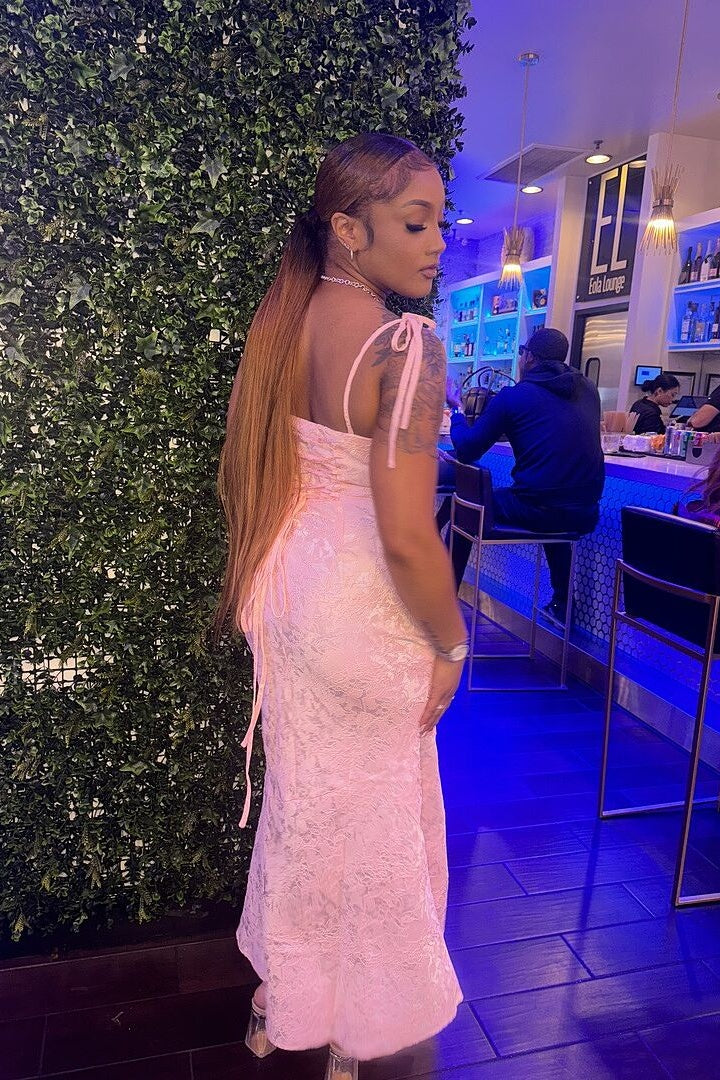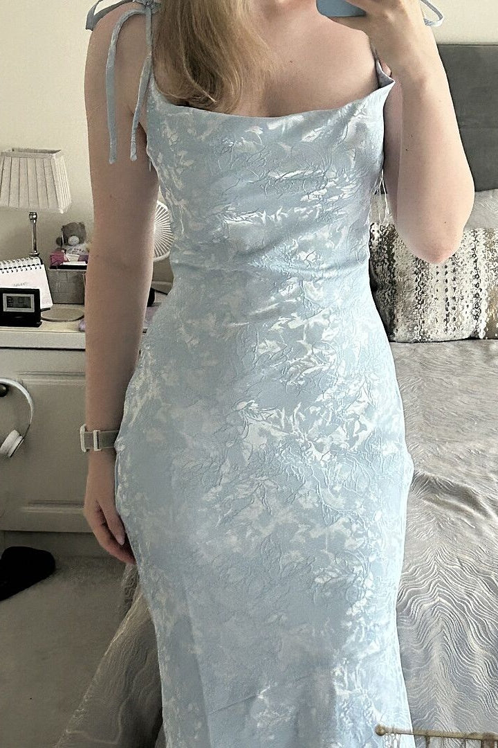 Tie Straps Ivory Floral Jacquard Mermaid Maxi Dress