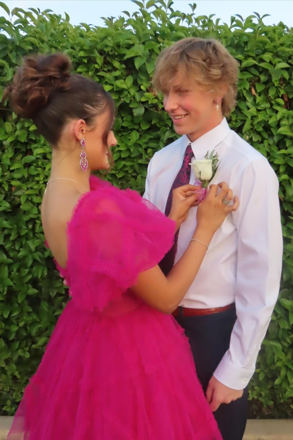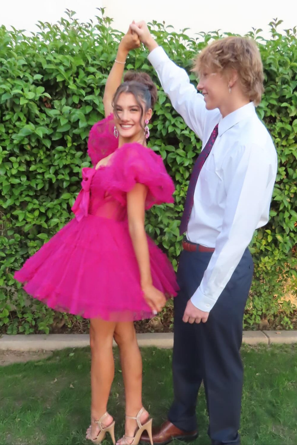 Puff Sleeves Fuchsia Ruffled Short Dress with Bow