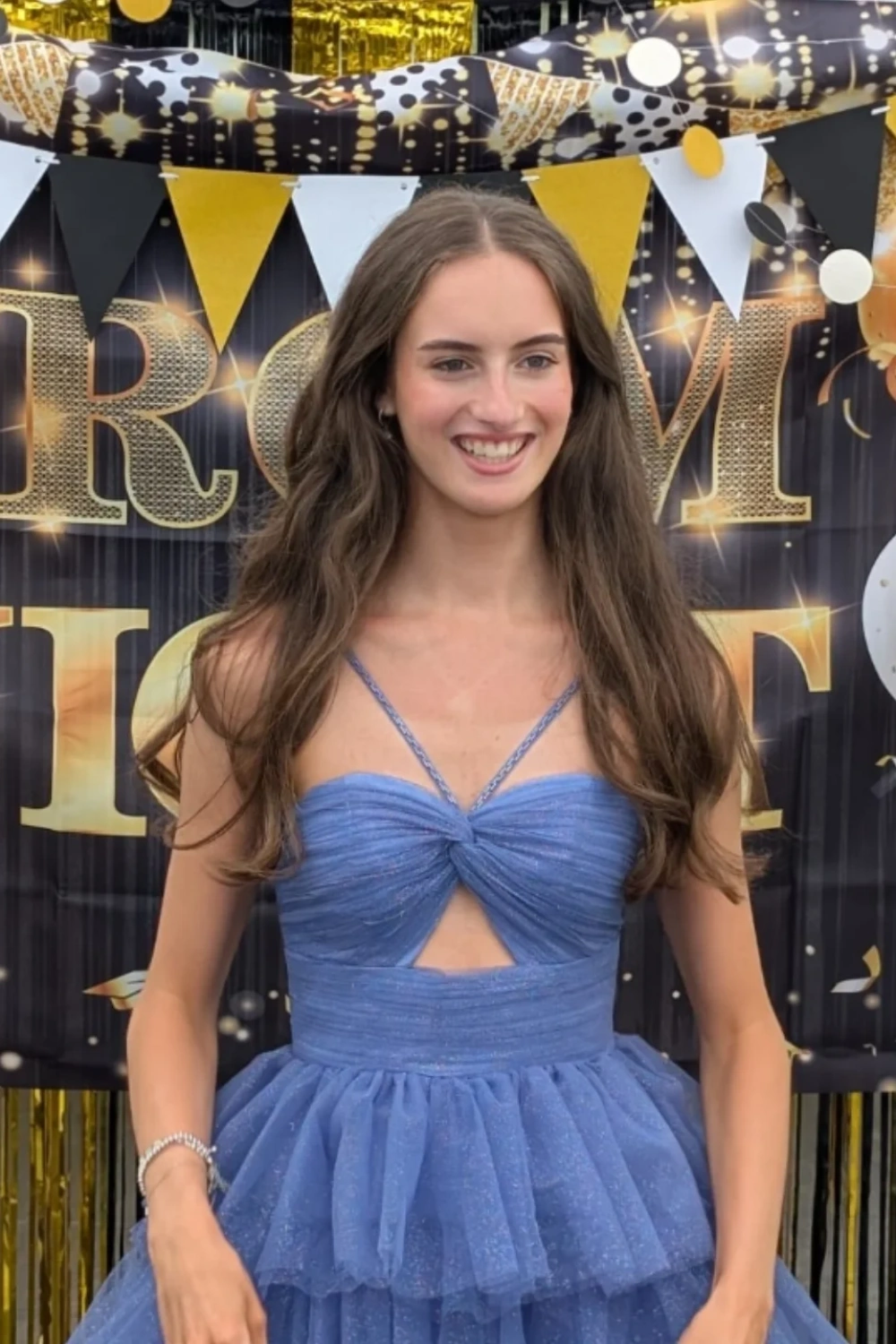 V-neck Sage Green Tiered Sparkle Tulle Long Dress