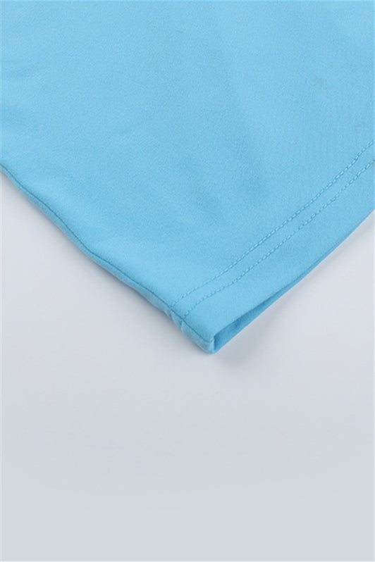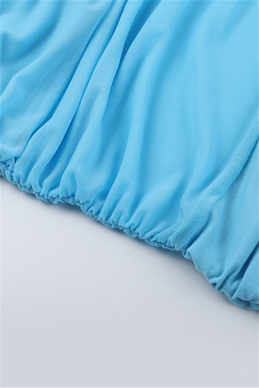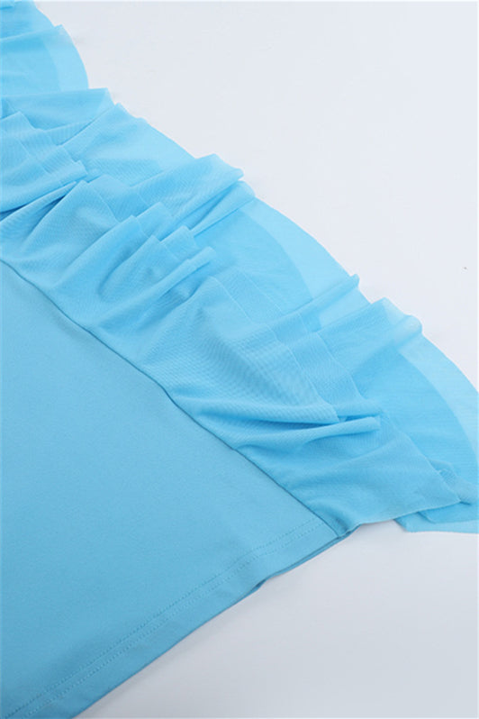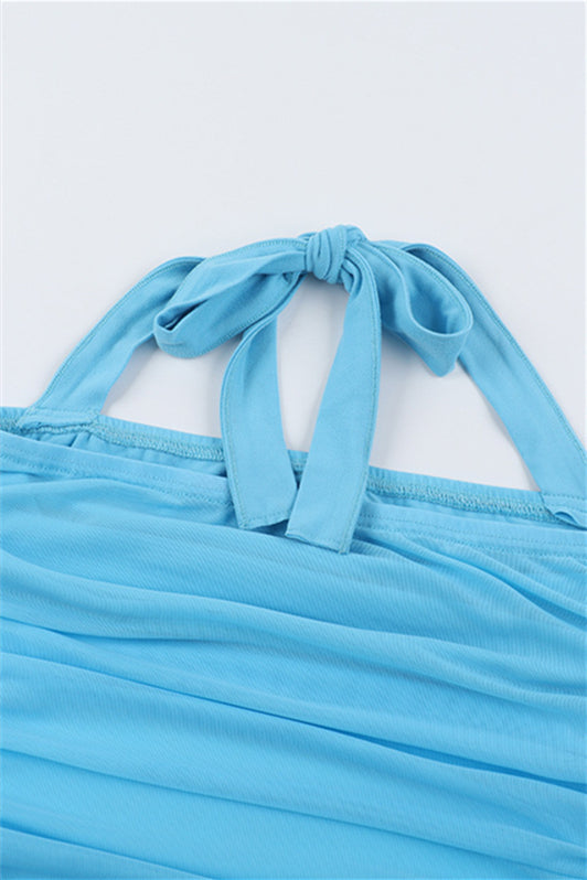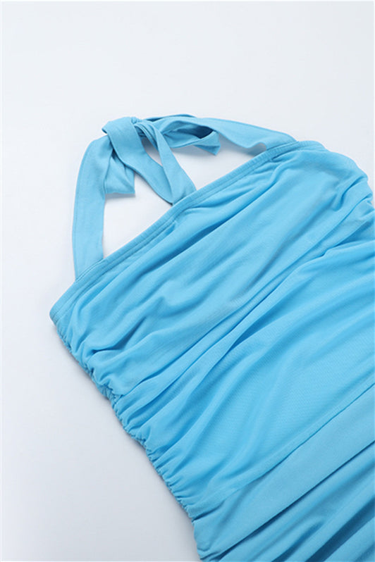 Halter Blue Ruffle Hem Maxi Dress with Slit