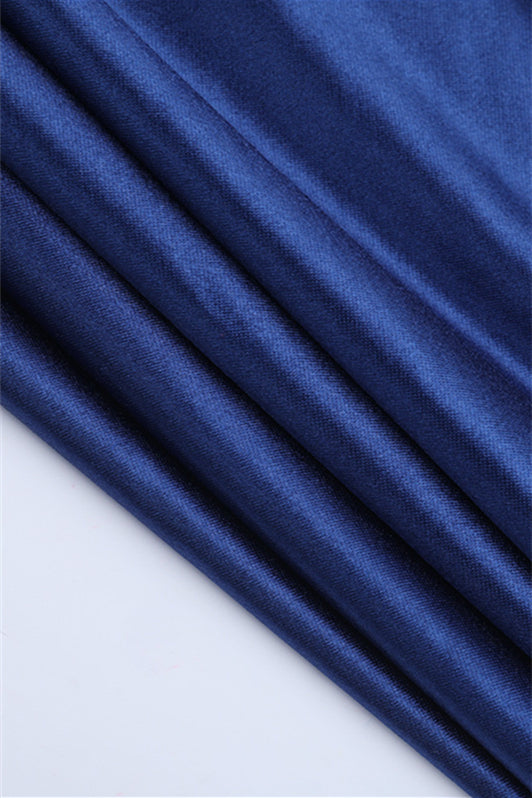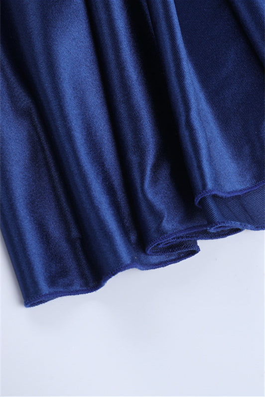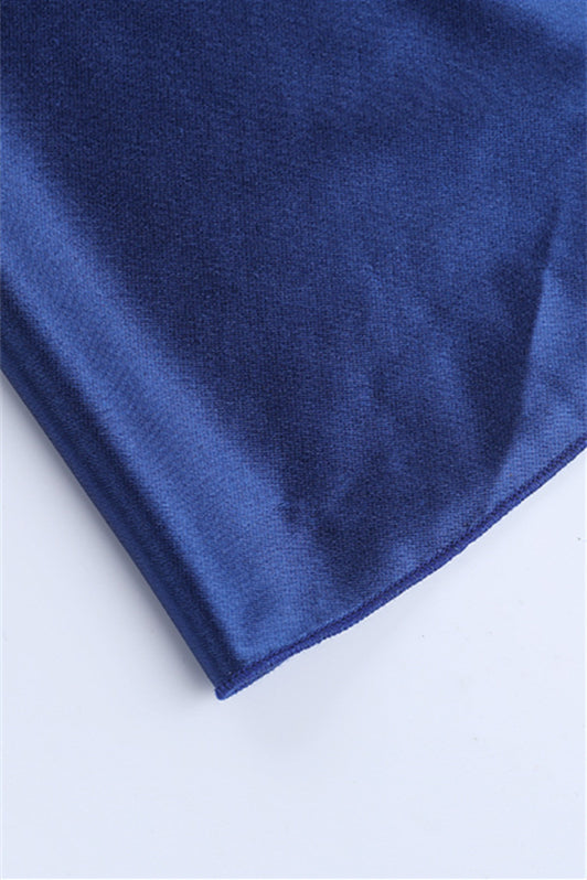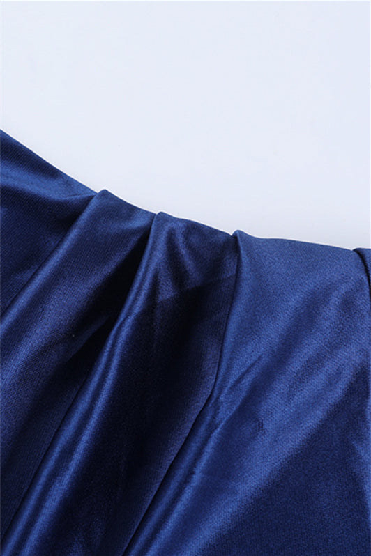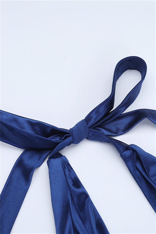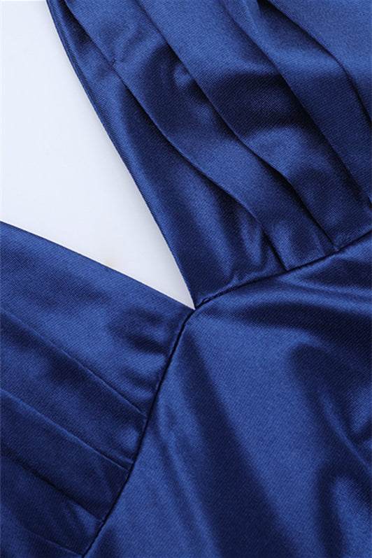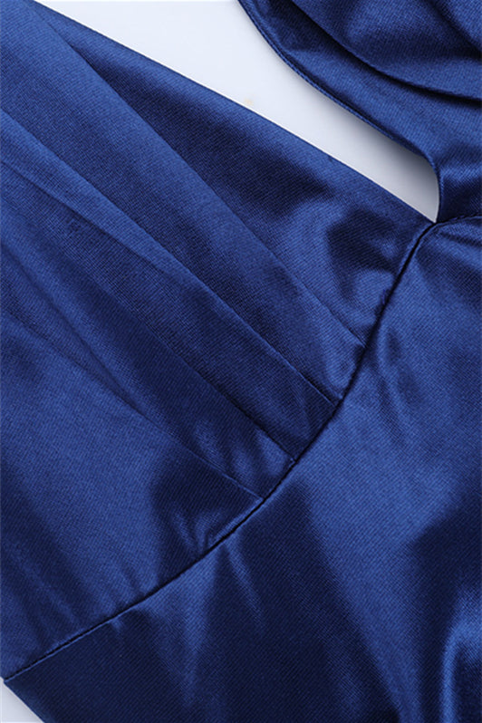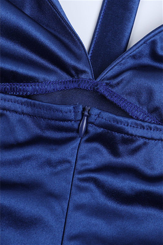 Halter Navy Blue Ruffled Hem Maxi Dress with Slit