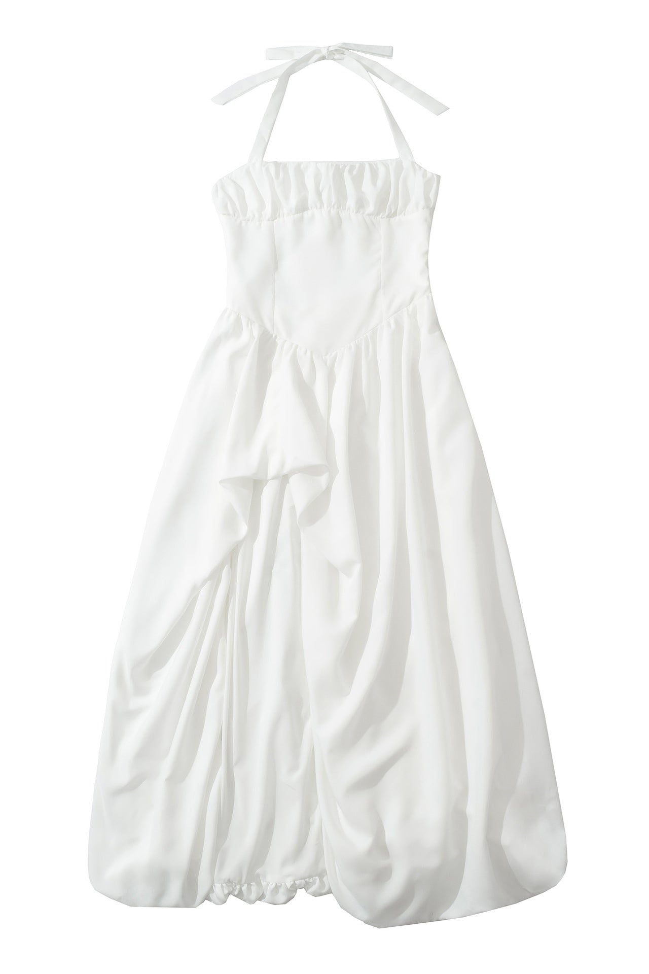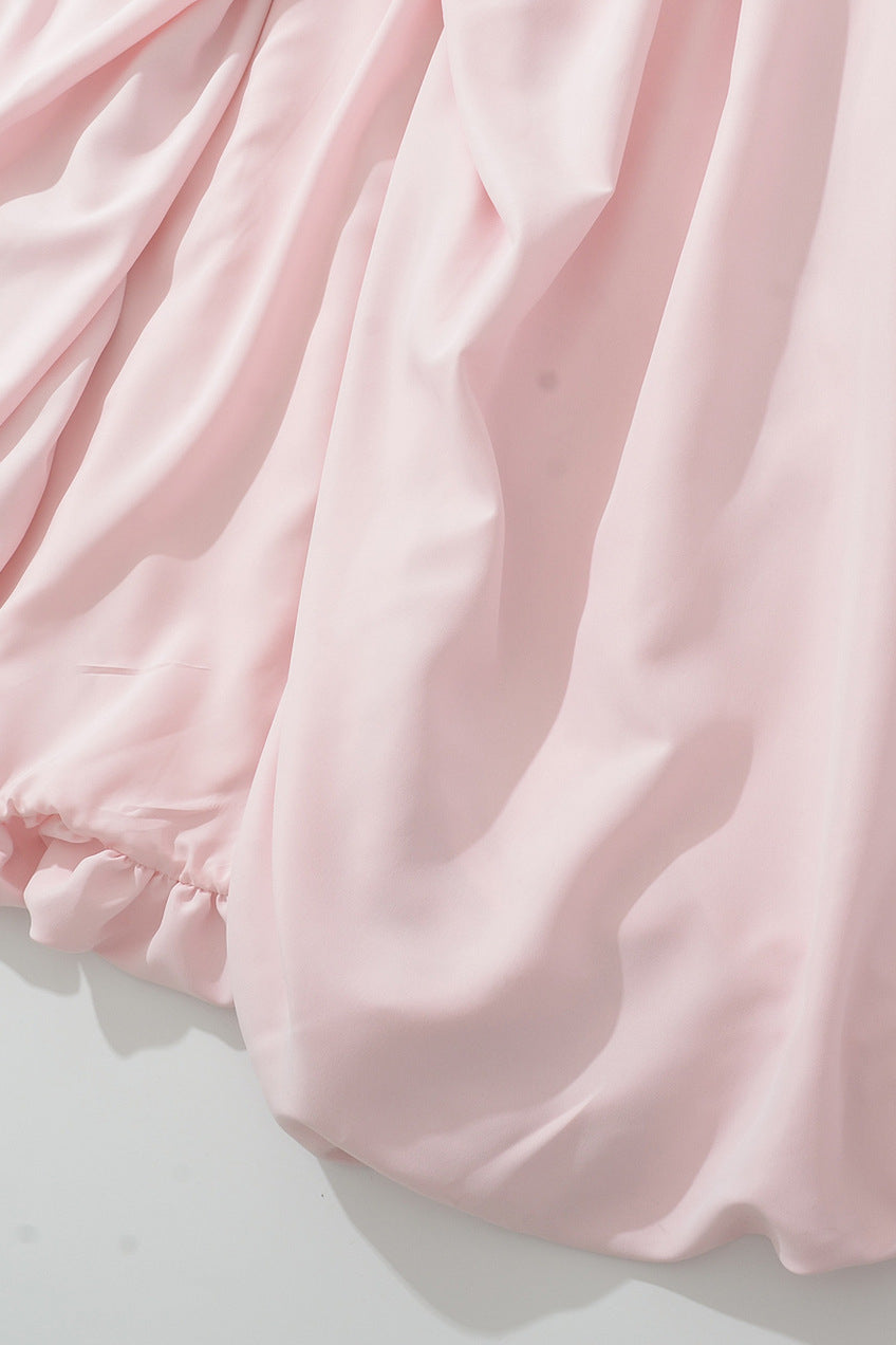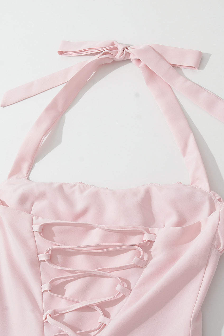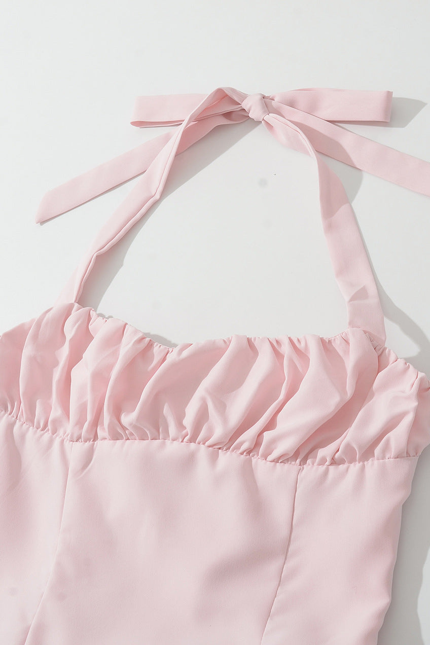 Halter Pink High-waisted Bubble Long Dress with Slit