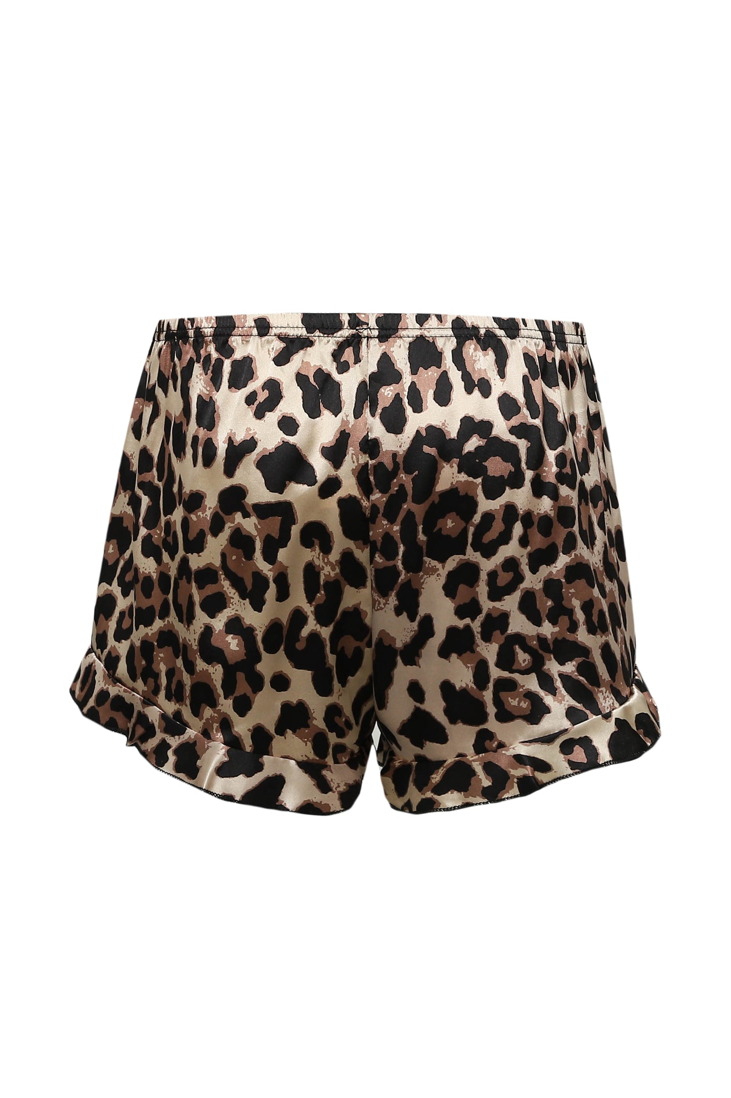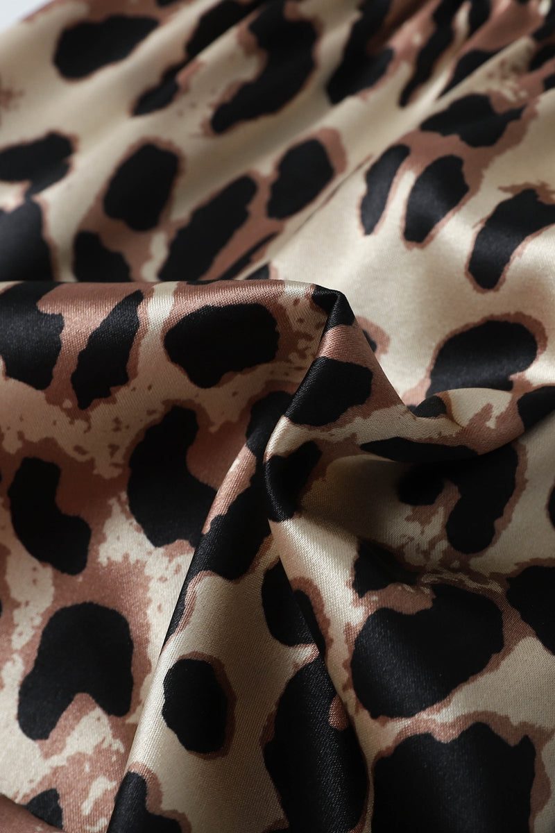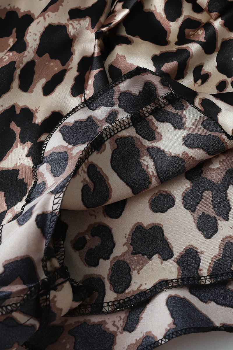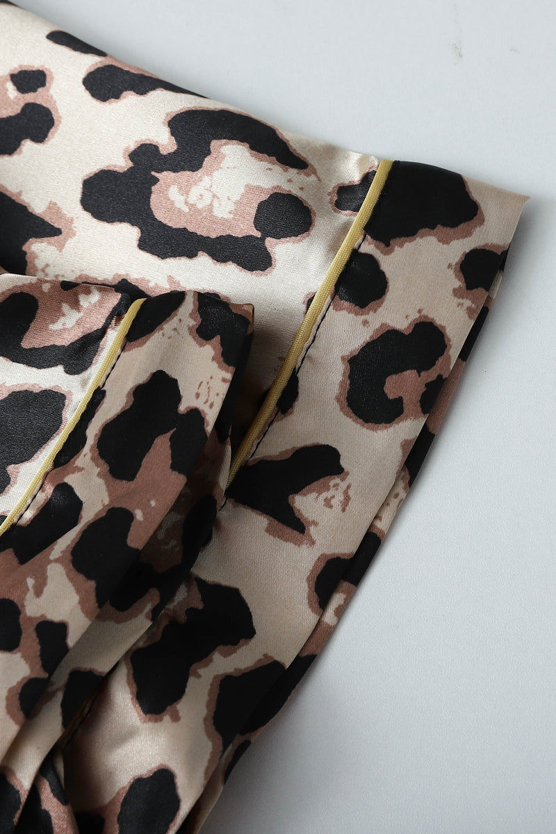 Leopard Striped Ruffled Satin Two-Piece Pajama Set