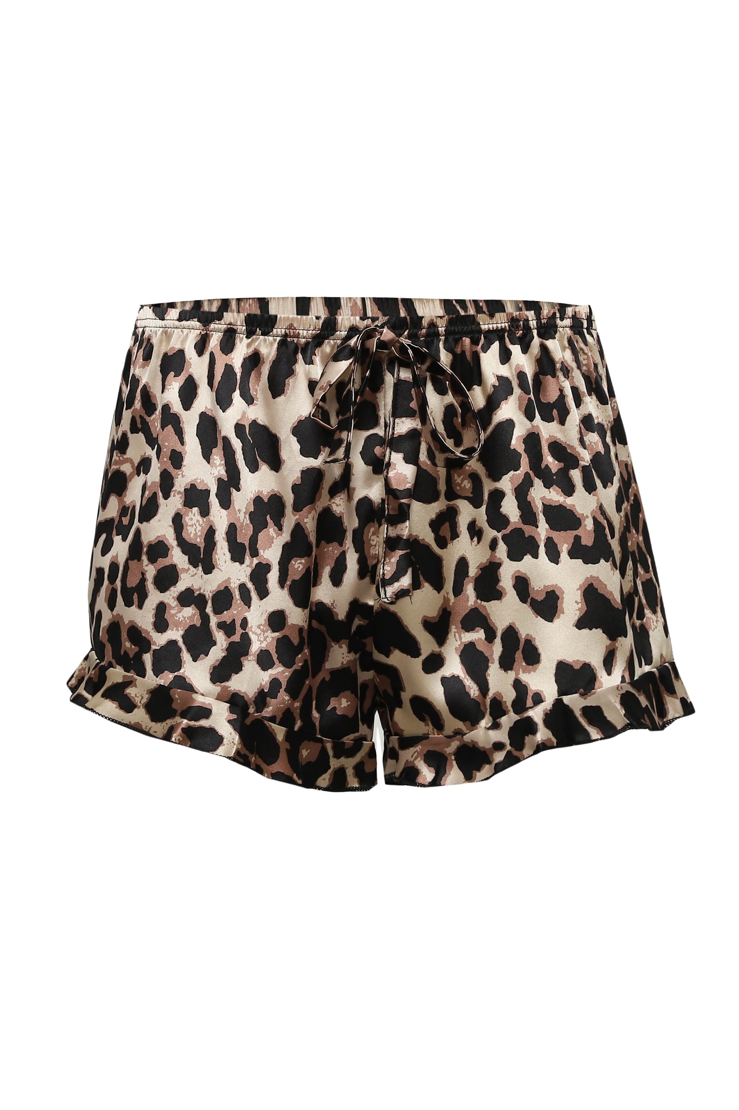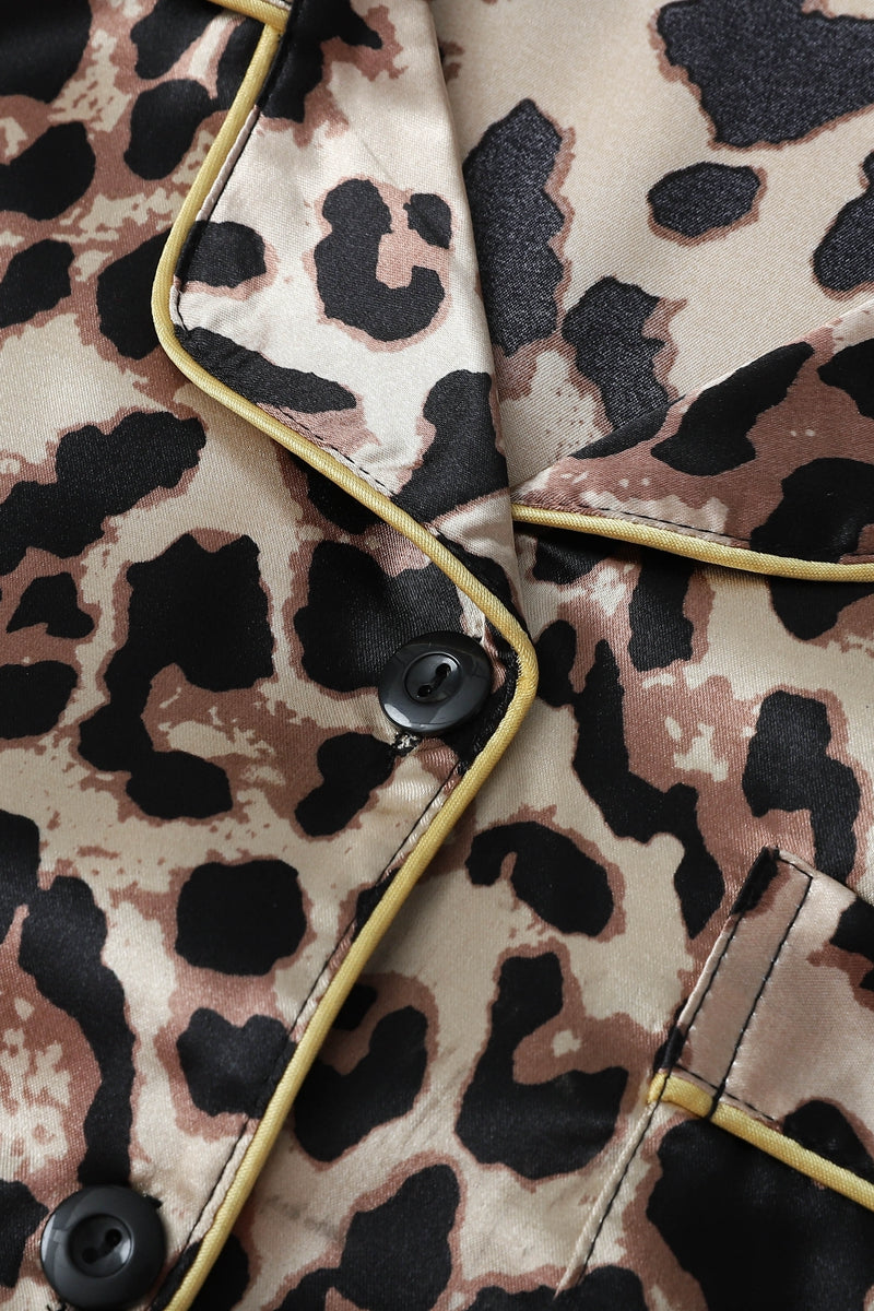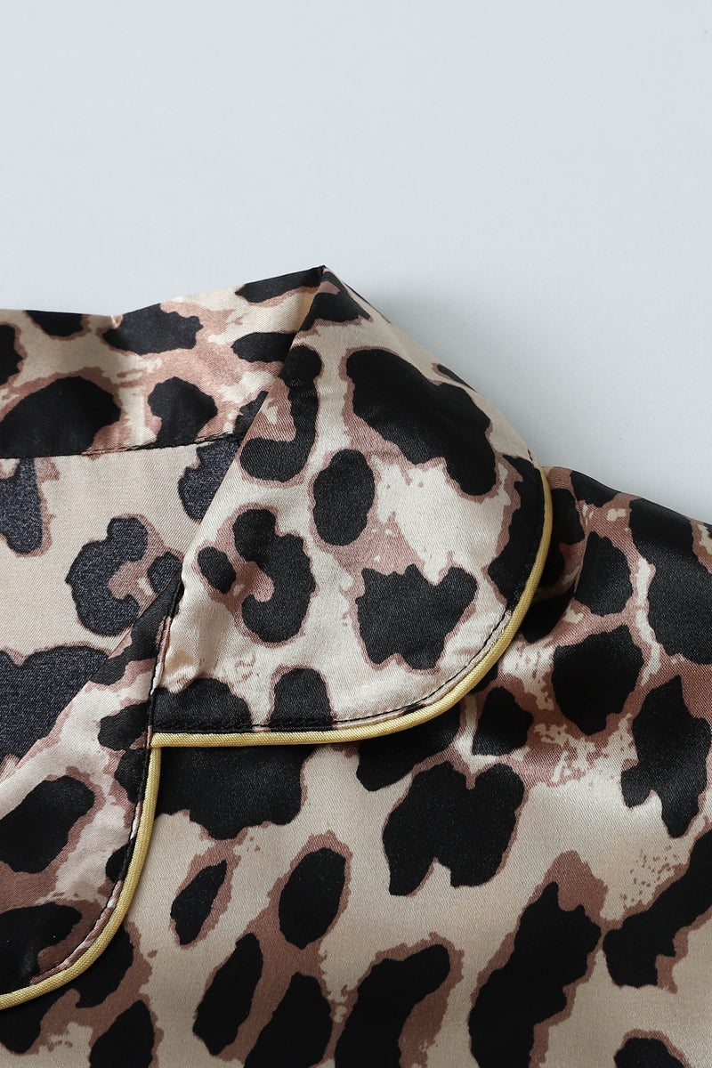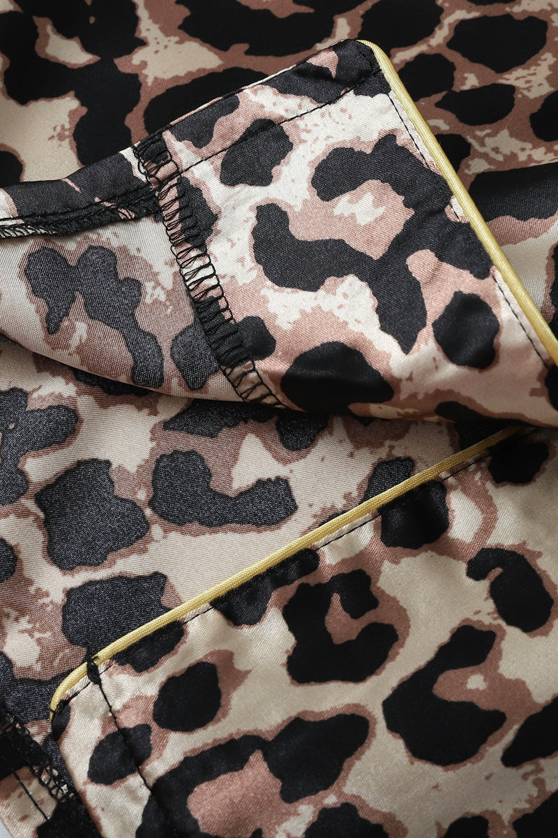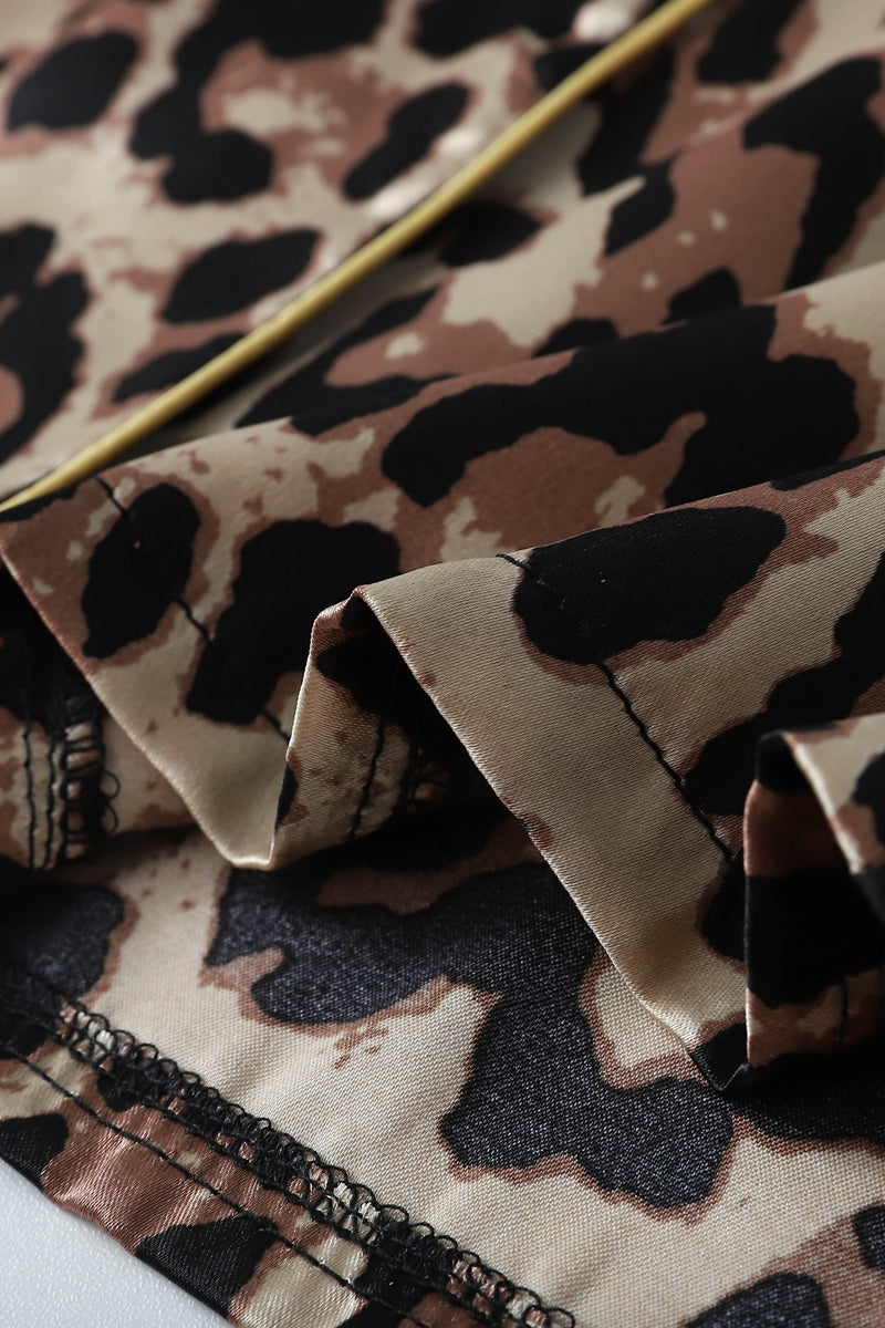 Leopard Striped Ruffled Satin Two-Piece Pajama Set
