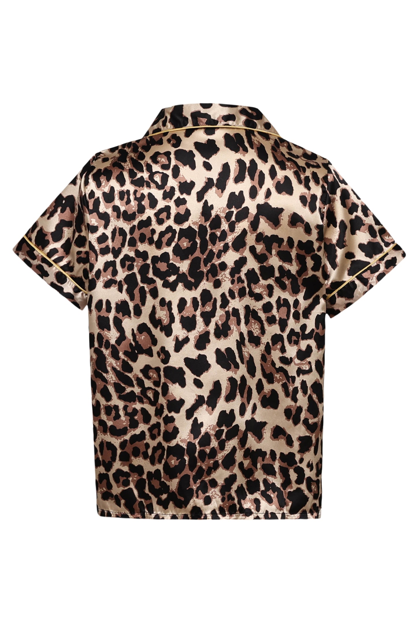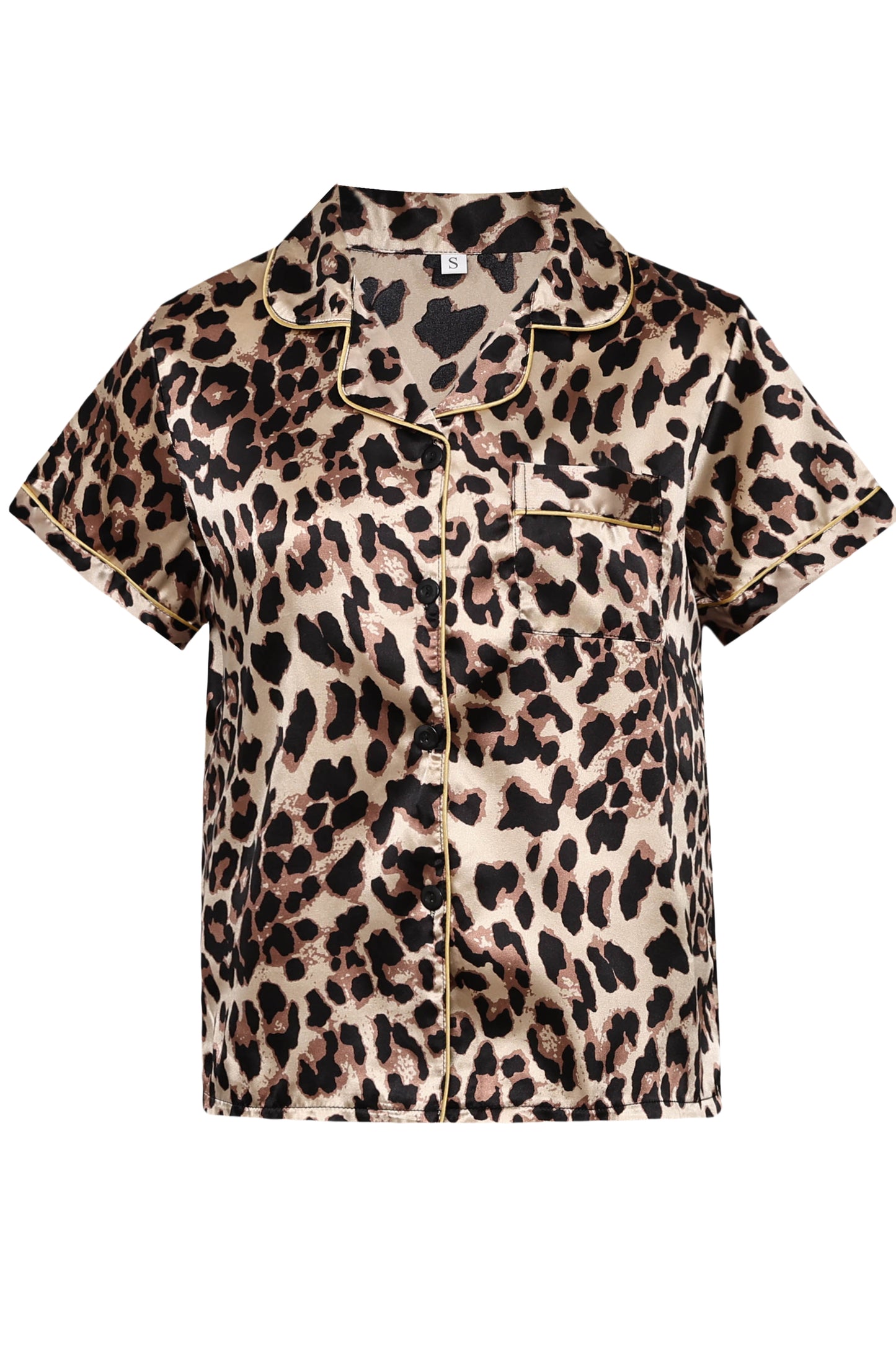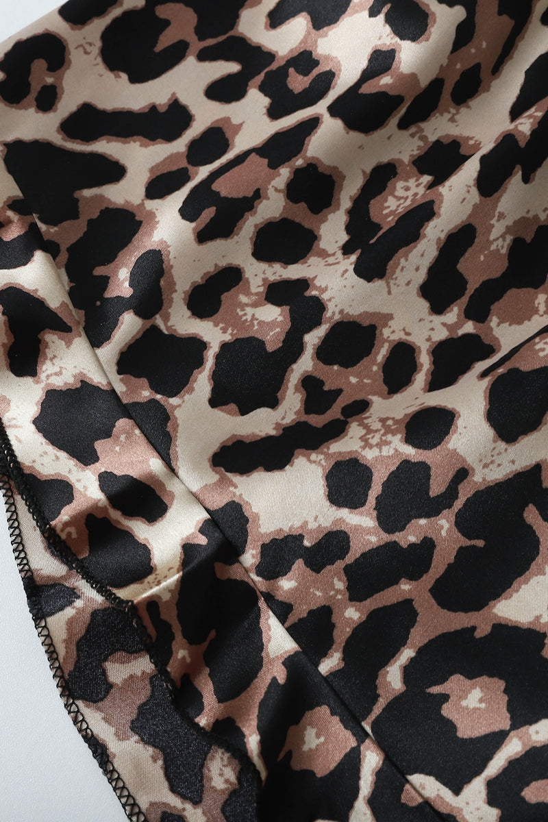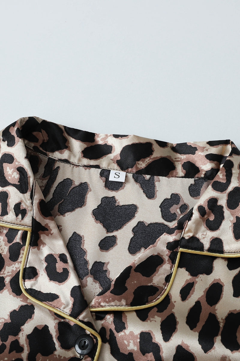 Leopard Striped Ruffled Satin Two-Piece Pajama Set