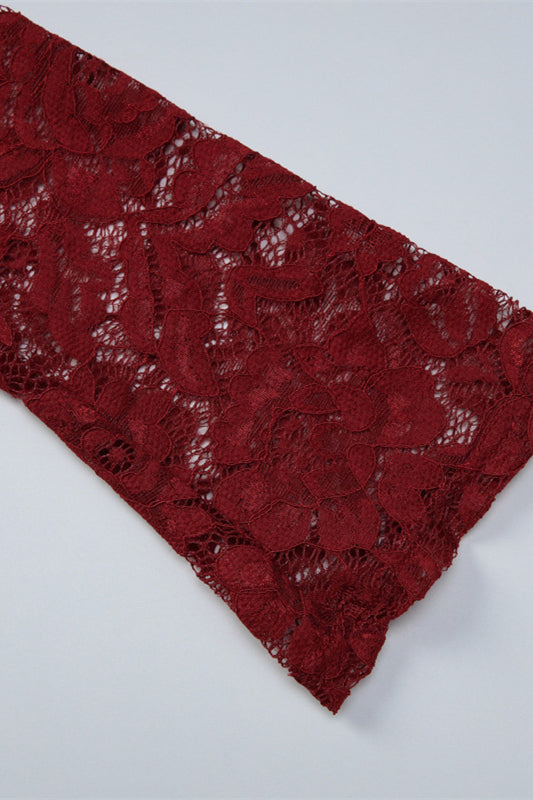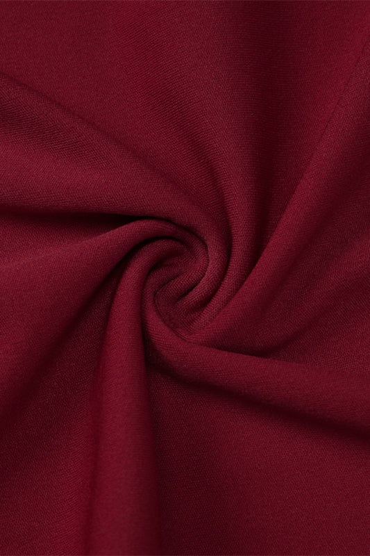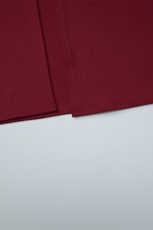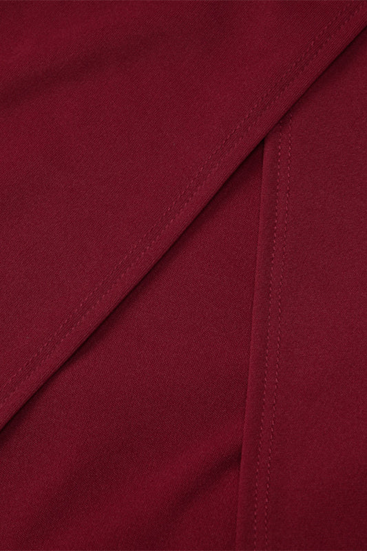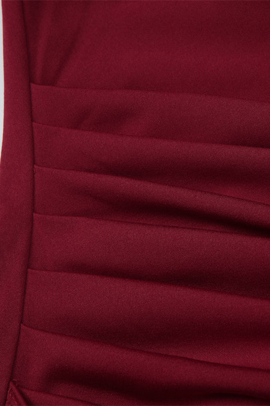 Long Sleeves Wine Red Pleated Maxi Dress with Slit