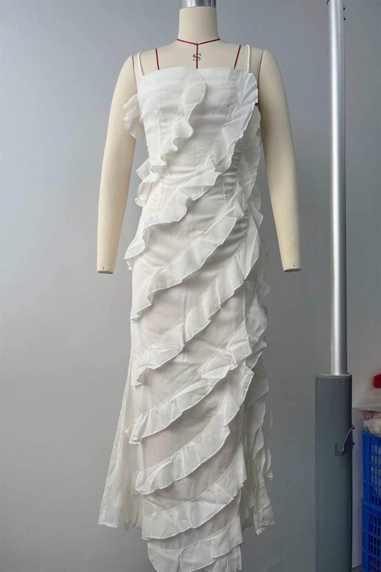 - Features: Ruffled hem