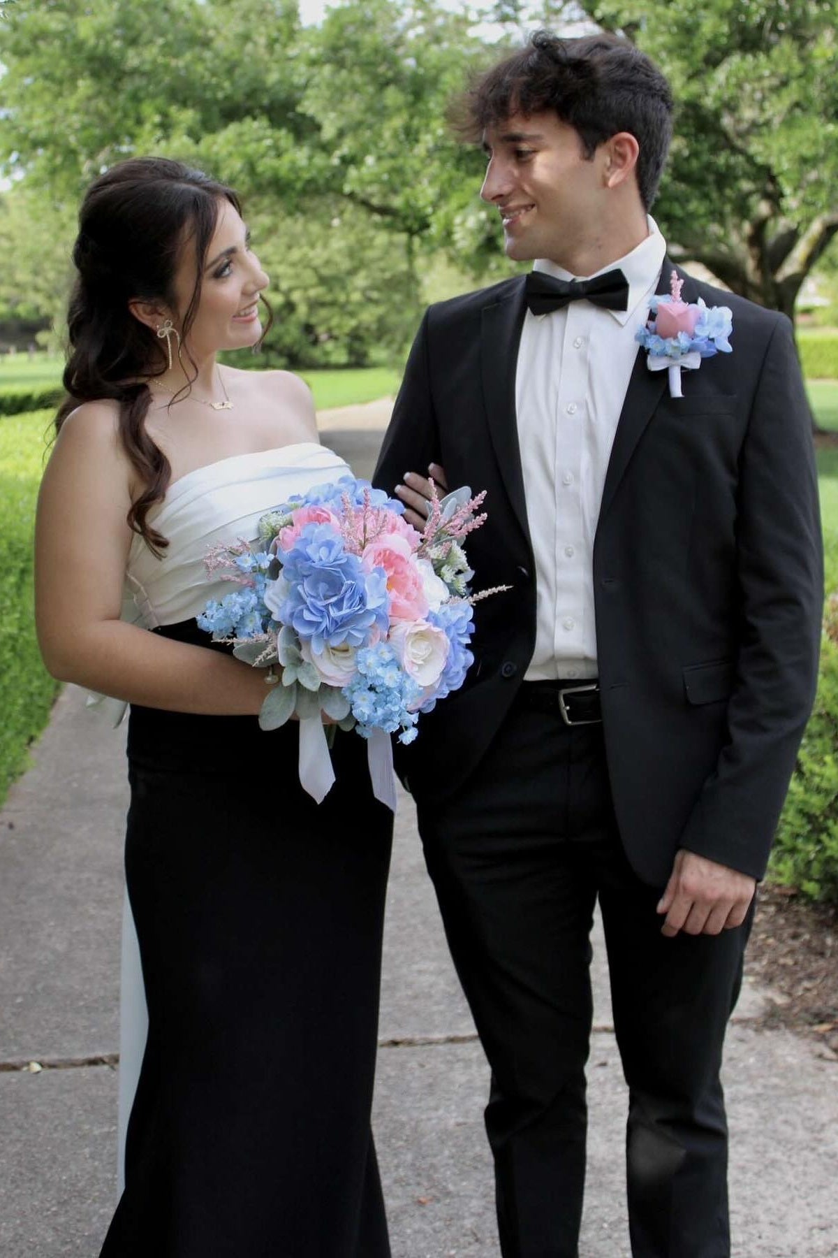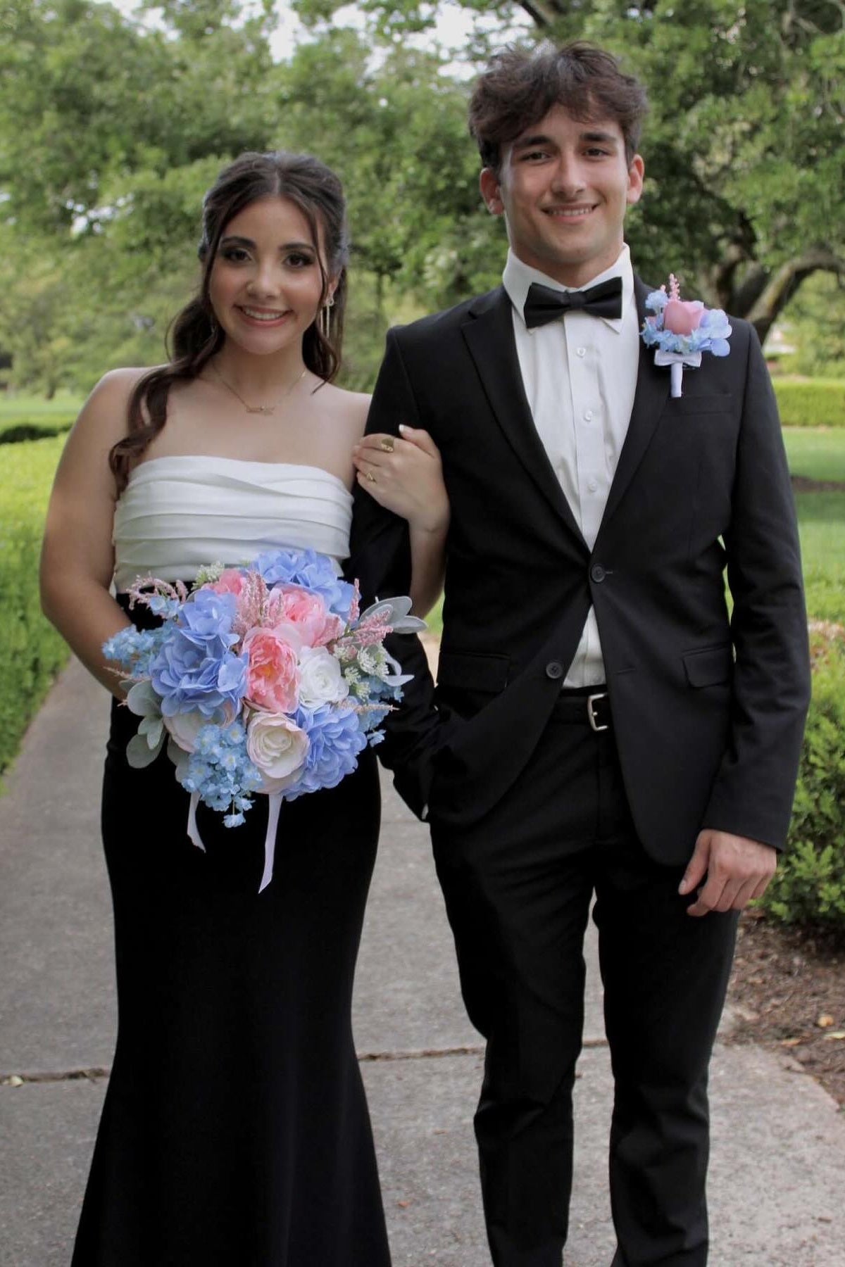 Strapless Black and White Back Bow Long Dress