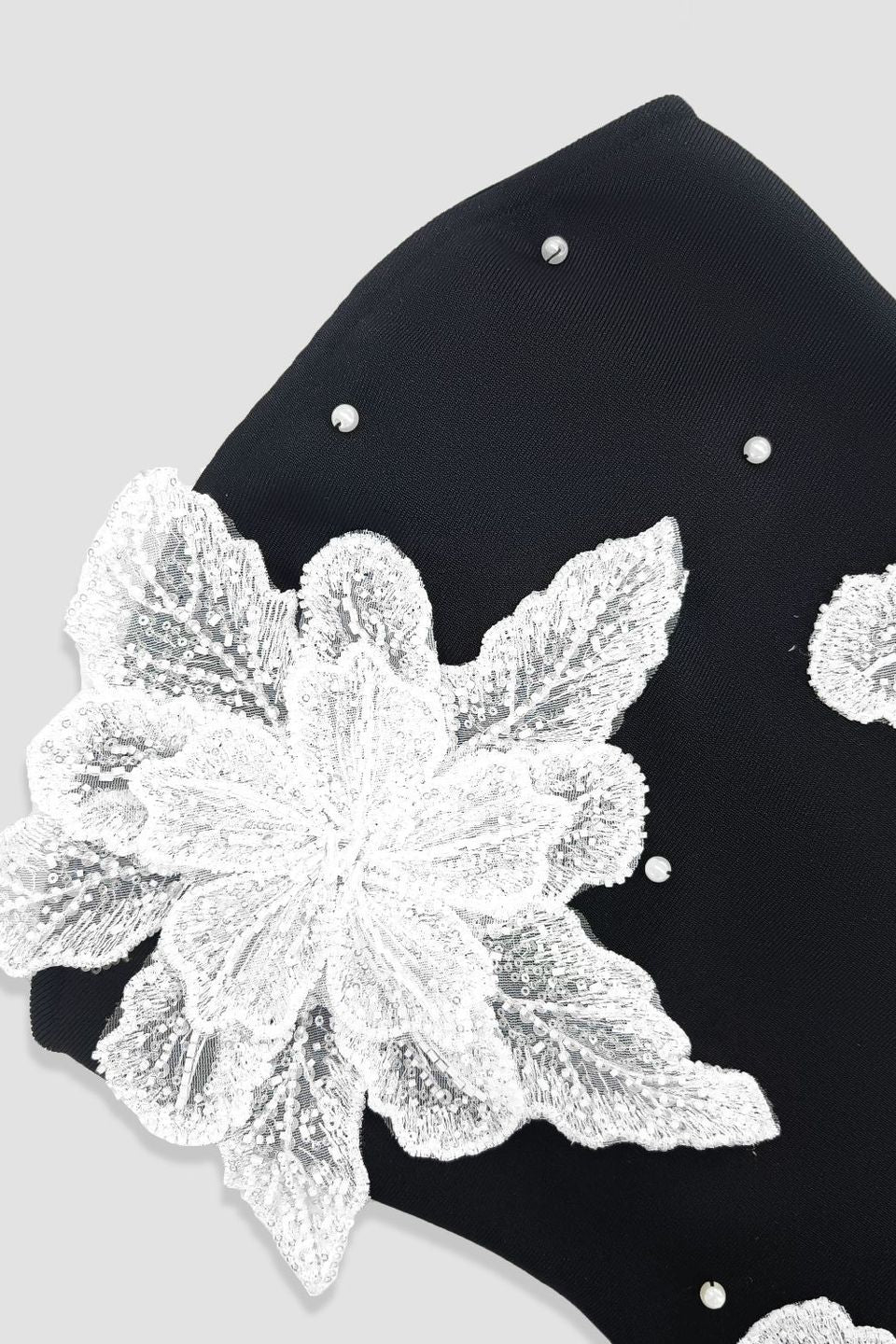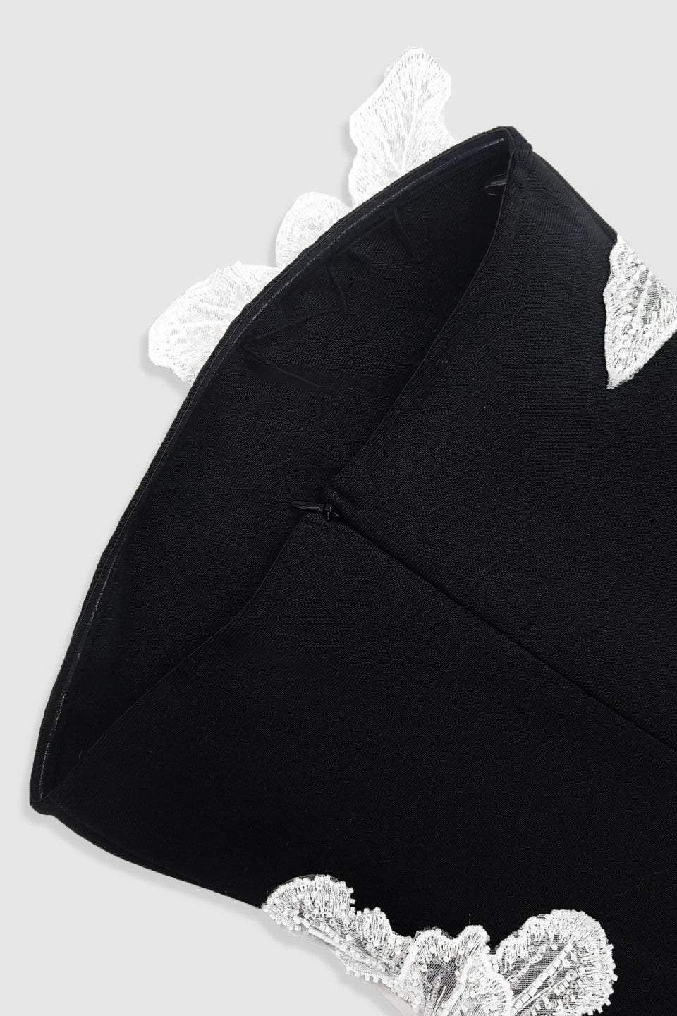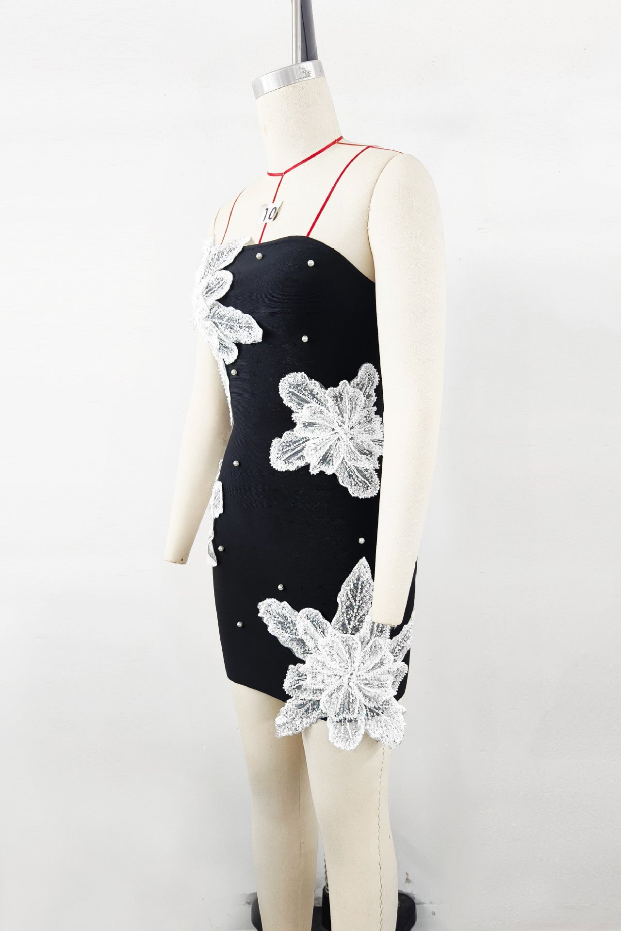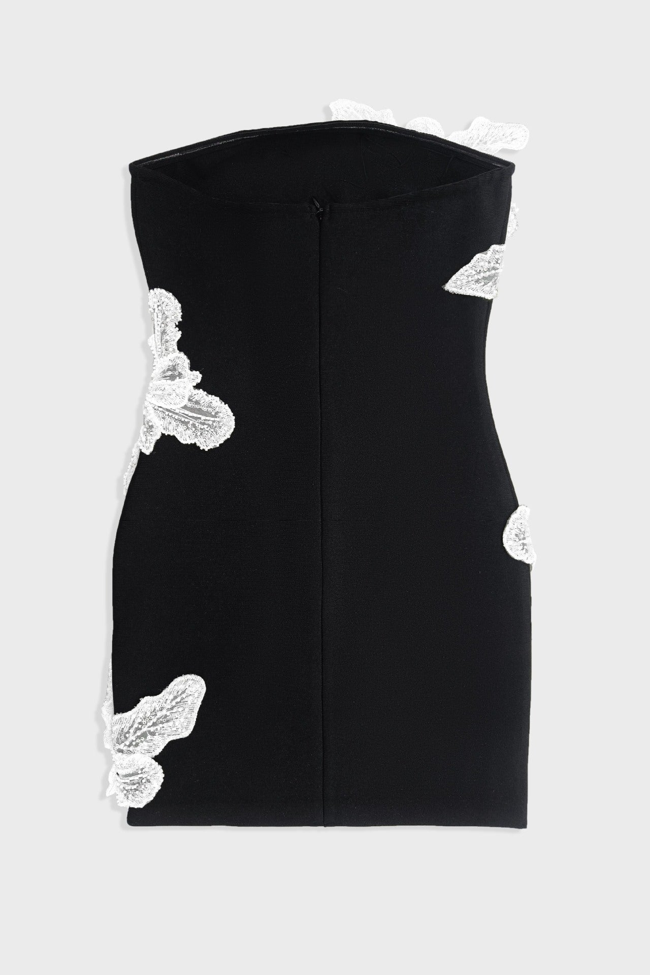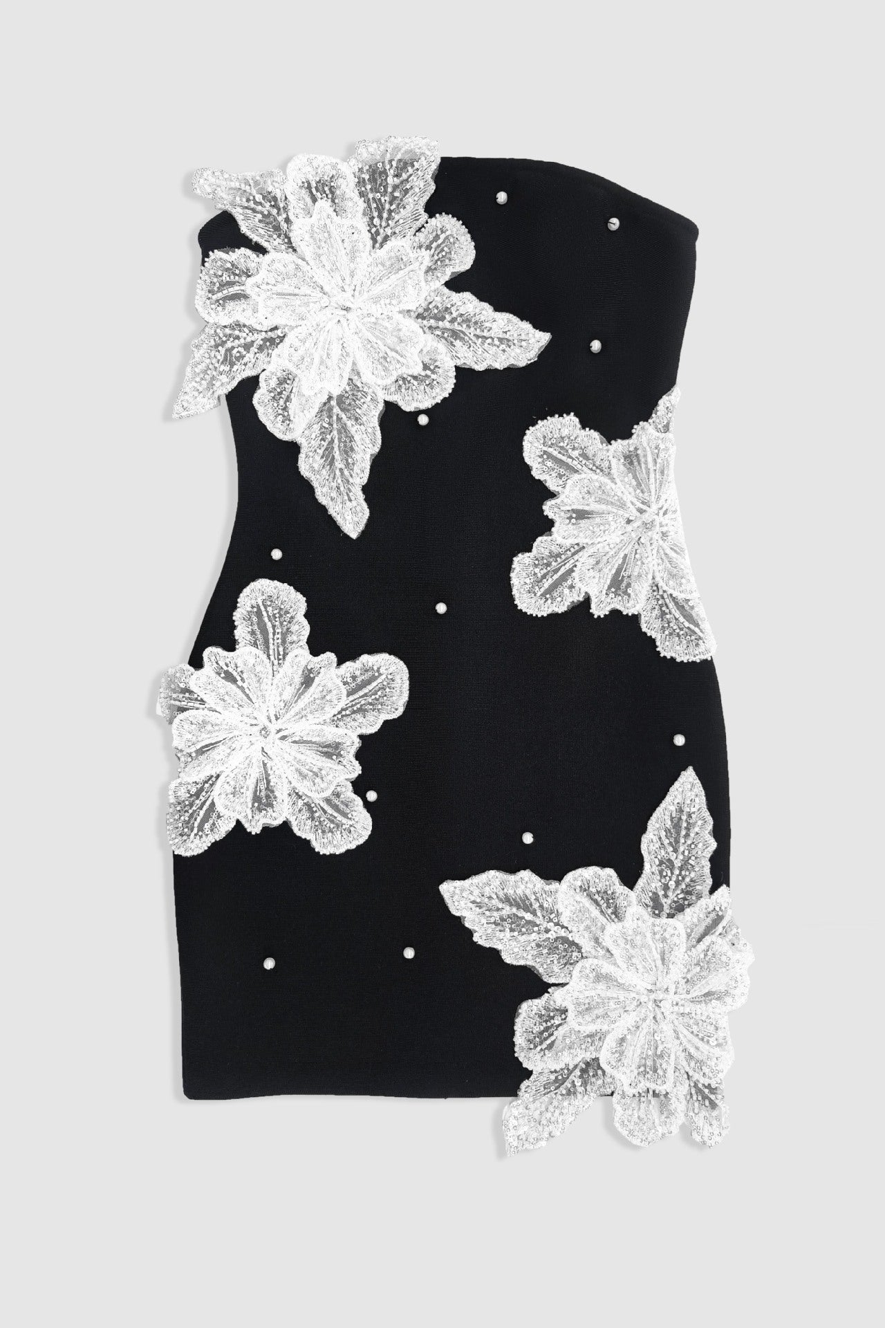 Strapless Black Floral Sequin Bodycon Mini Dress
