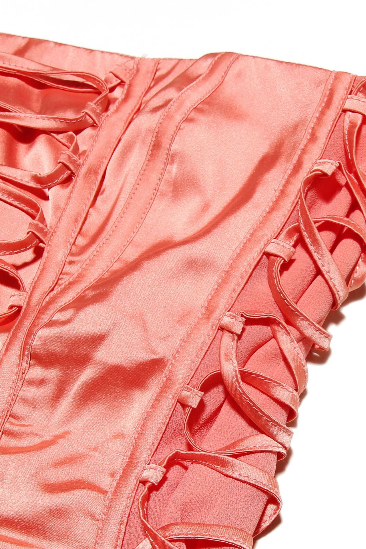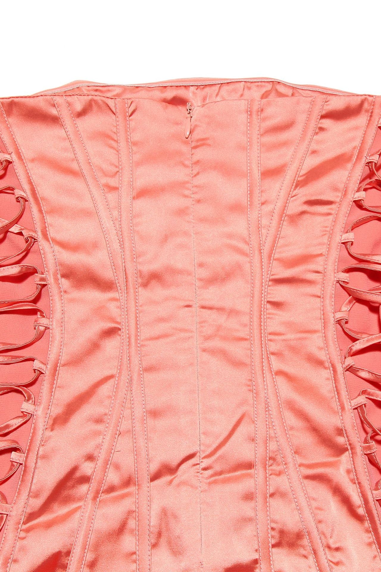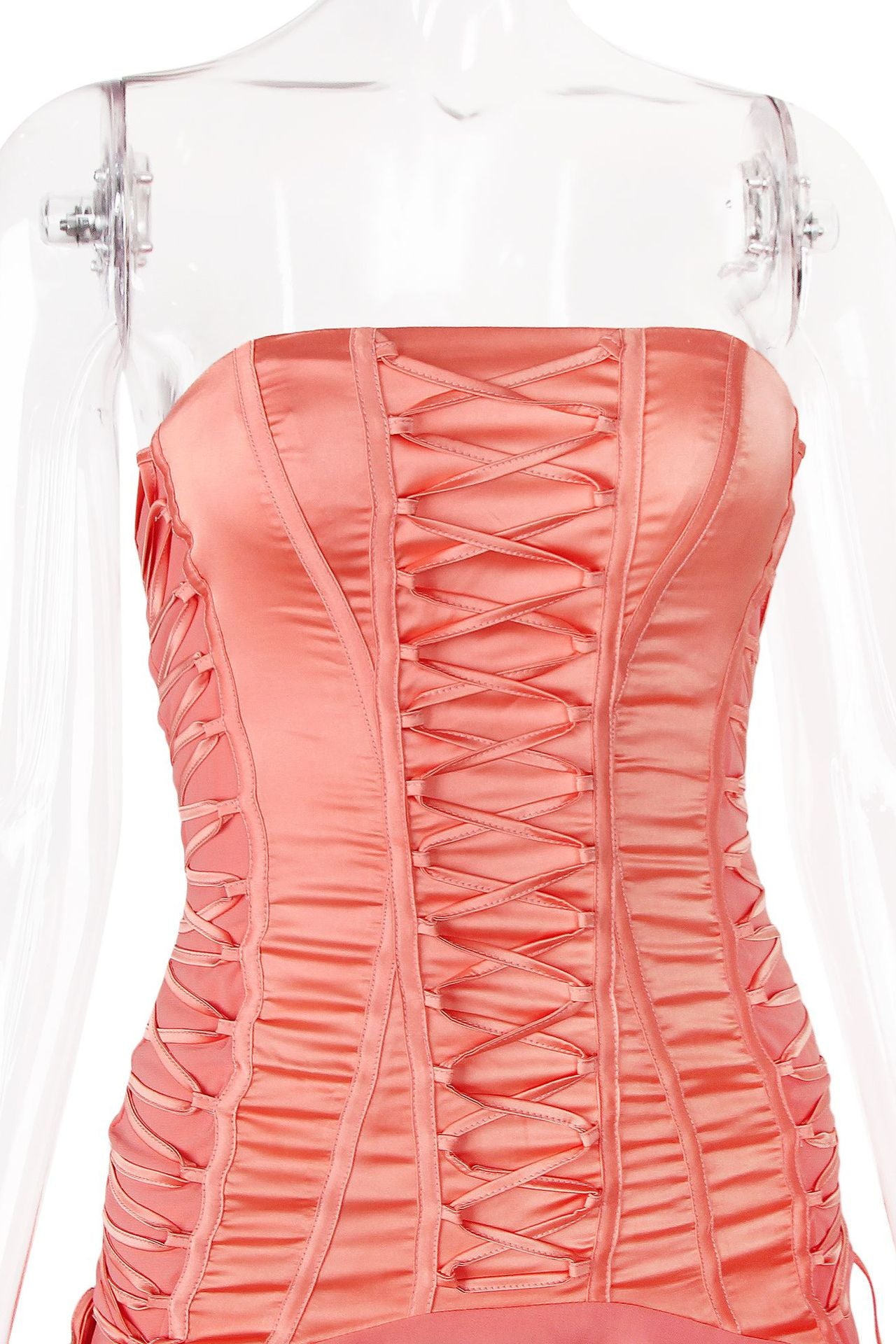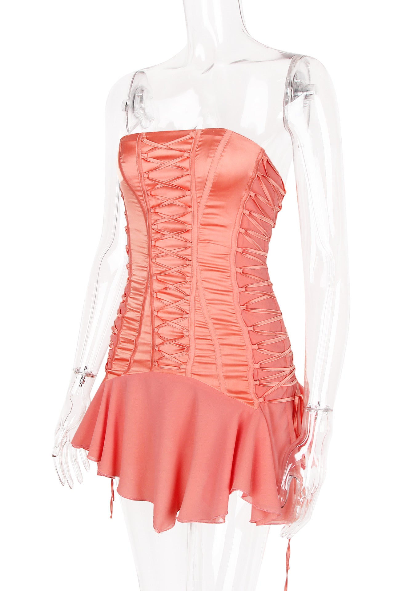 Strapless Orange Lace Up Chiffon Patchwork Short Dress