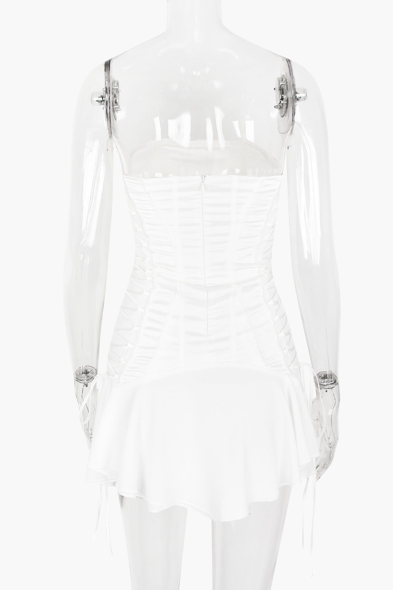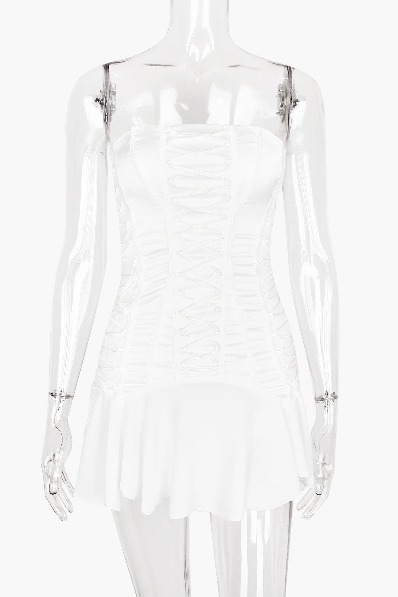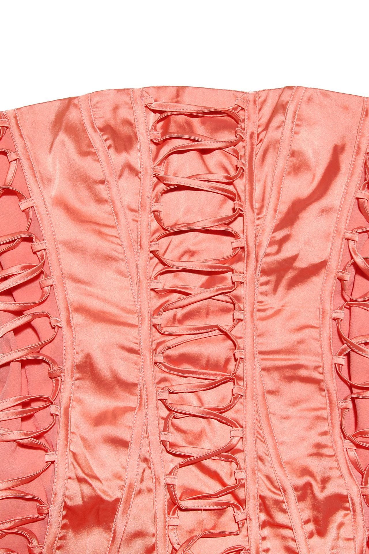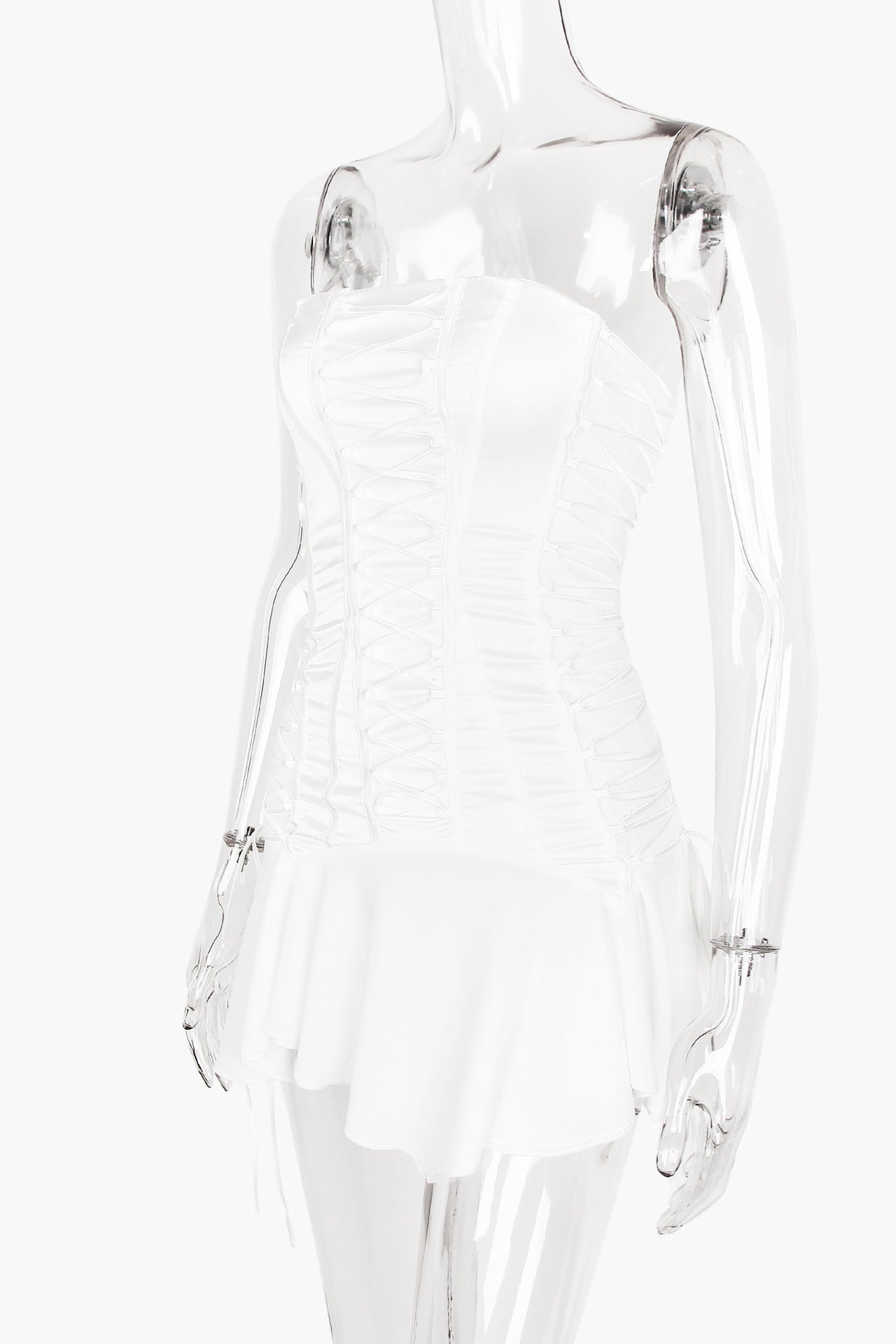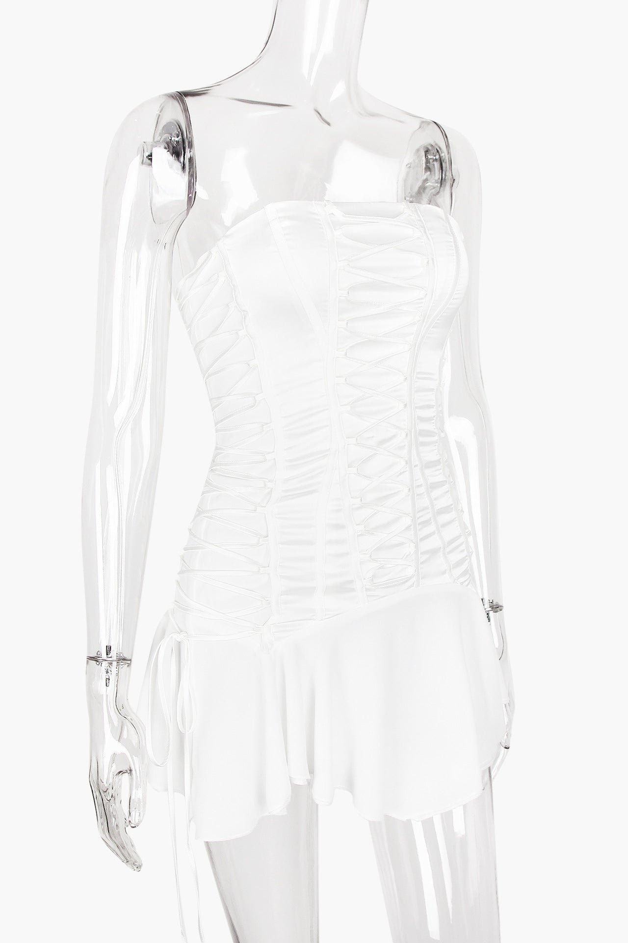 Strapless Orange Lace Up Chiffon Patchwork Short Dress