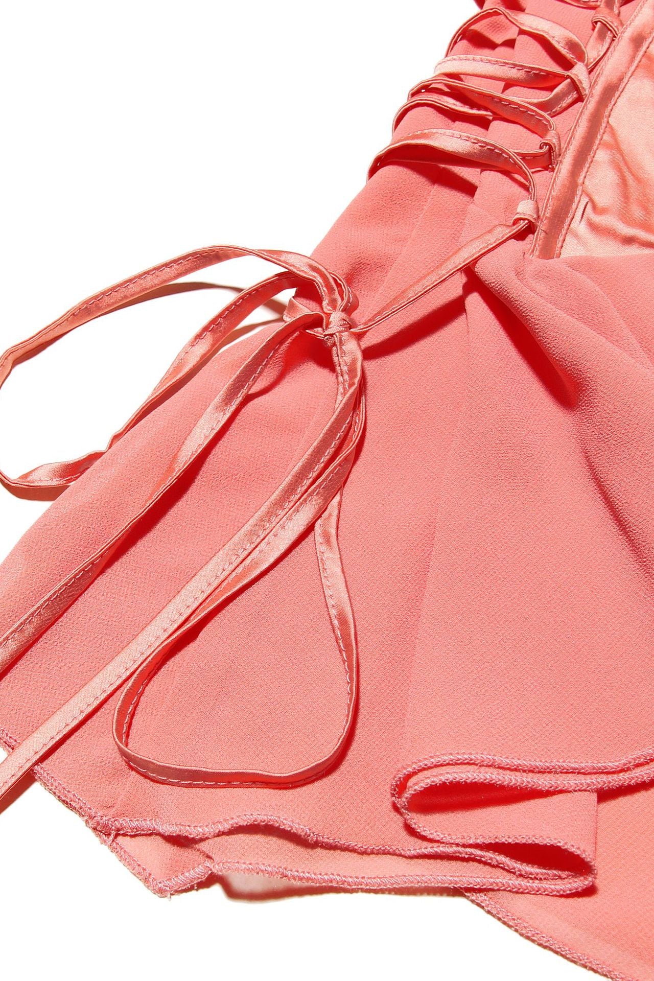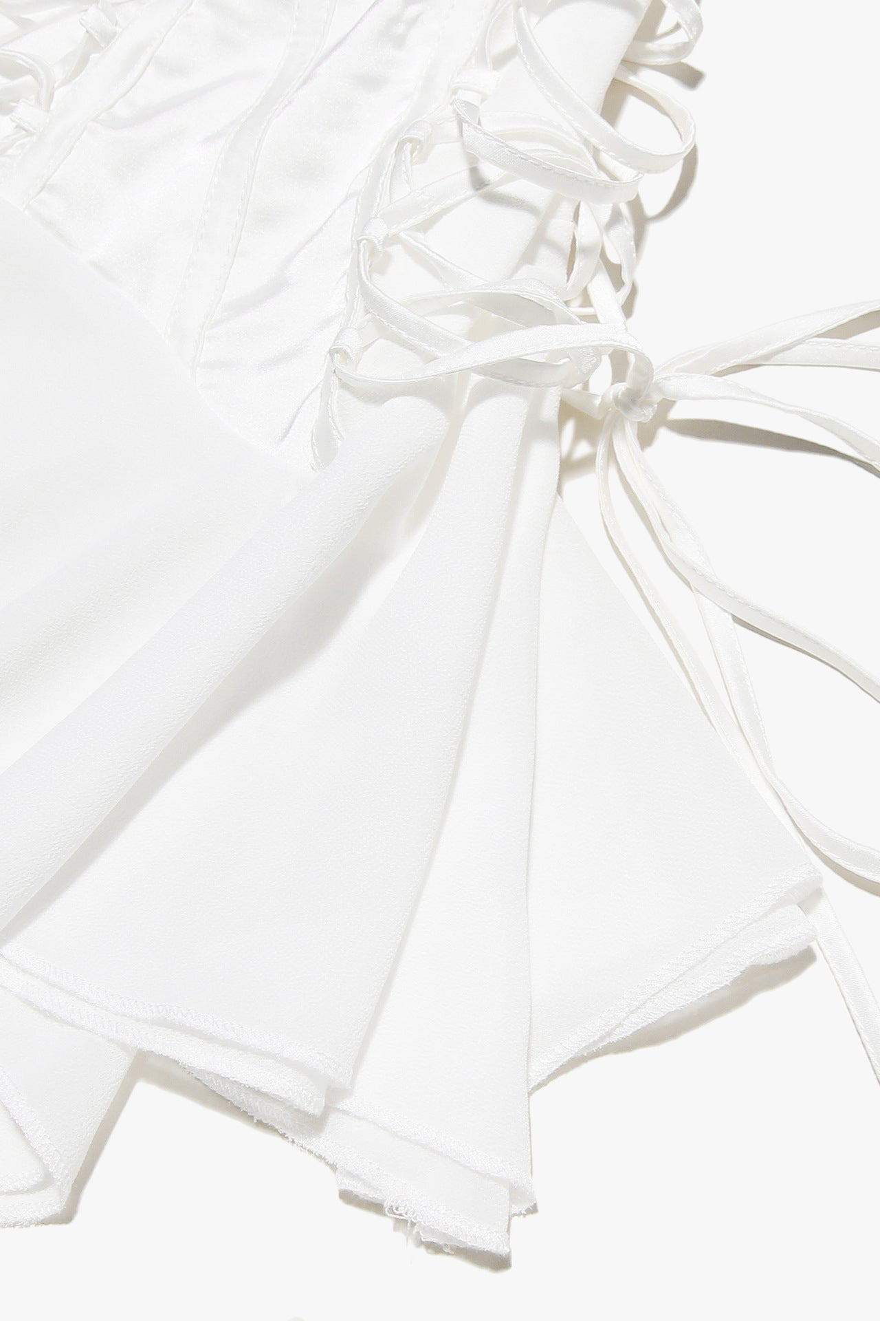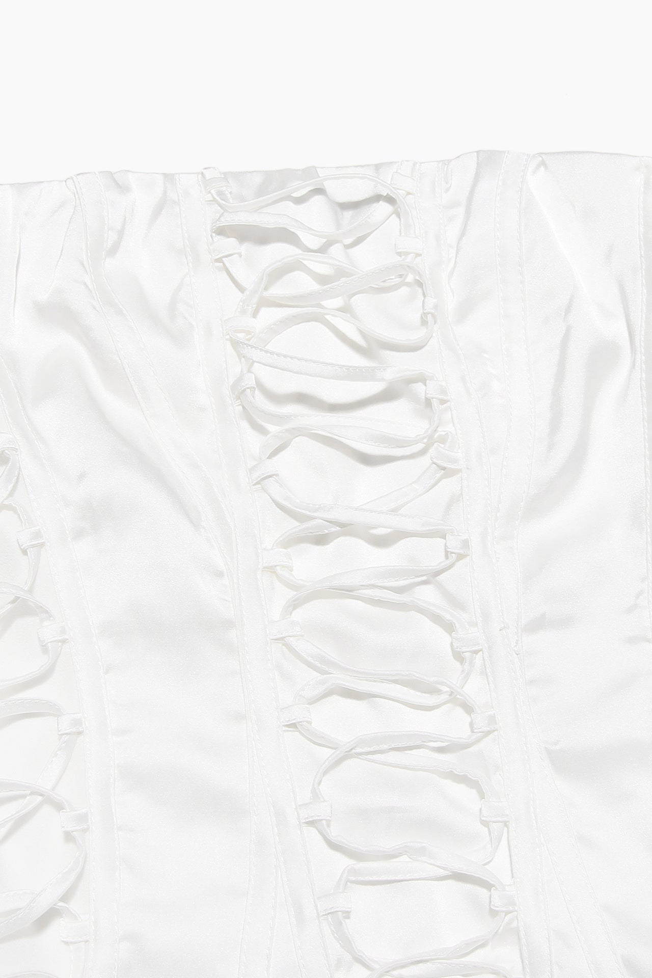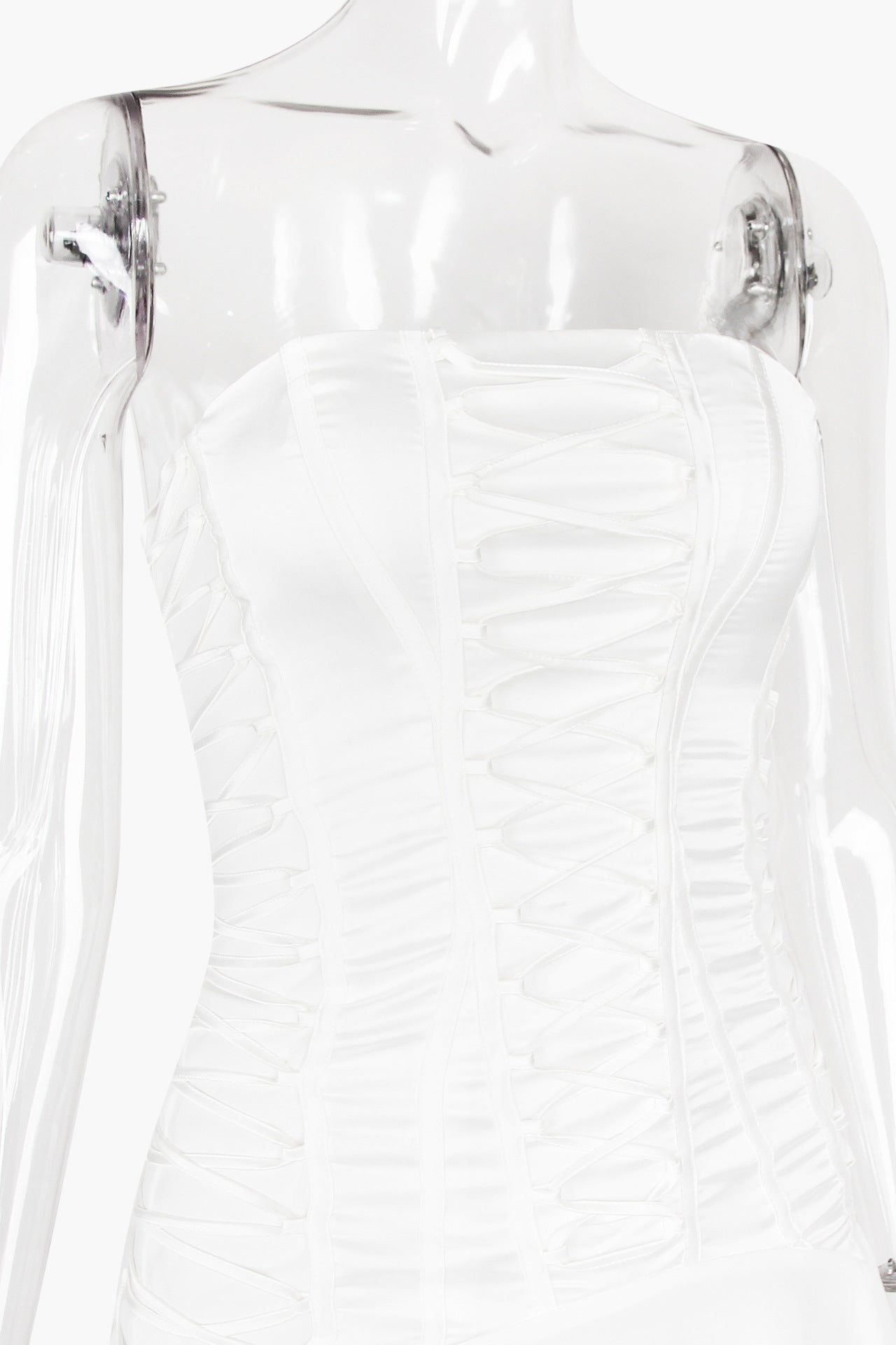 Strapless Orange Lace Up Chiffon Patchwork Short Dress
