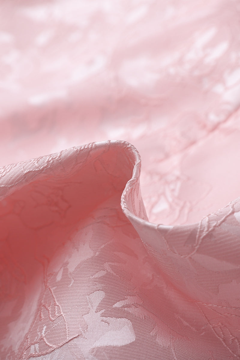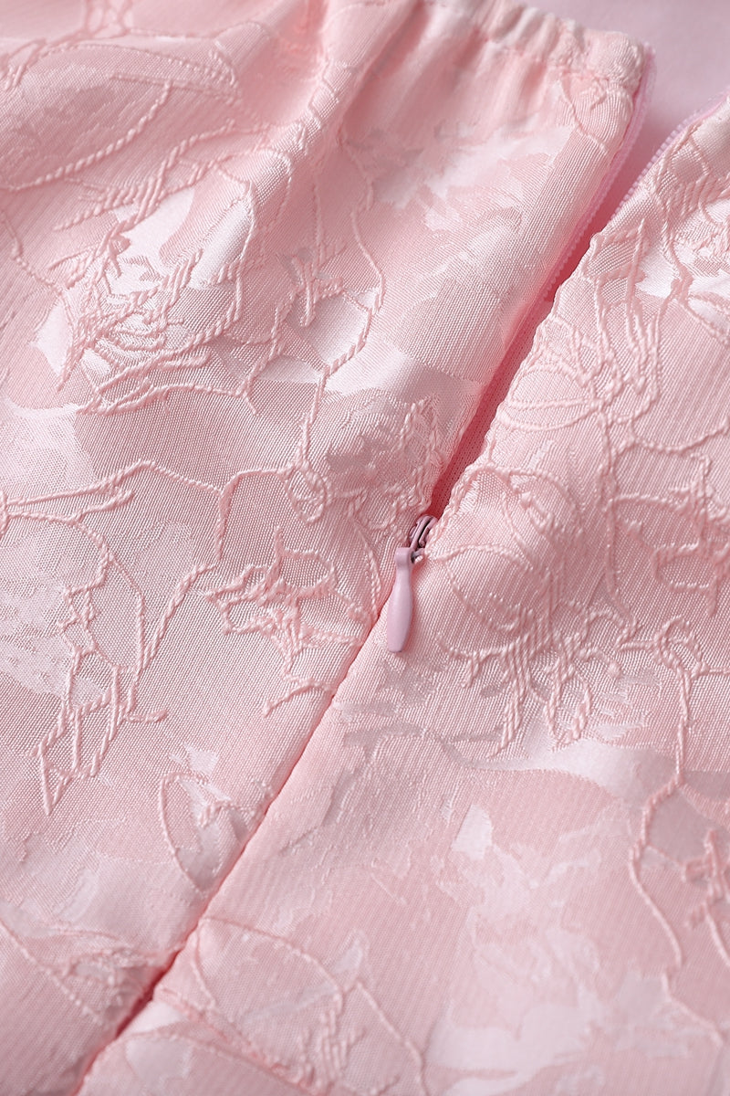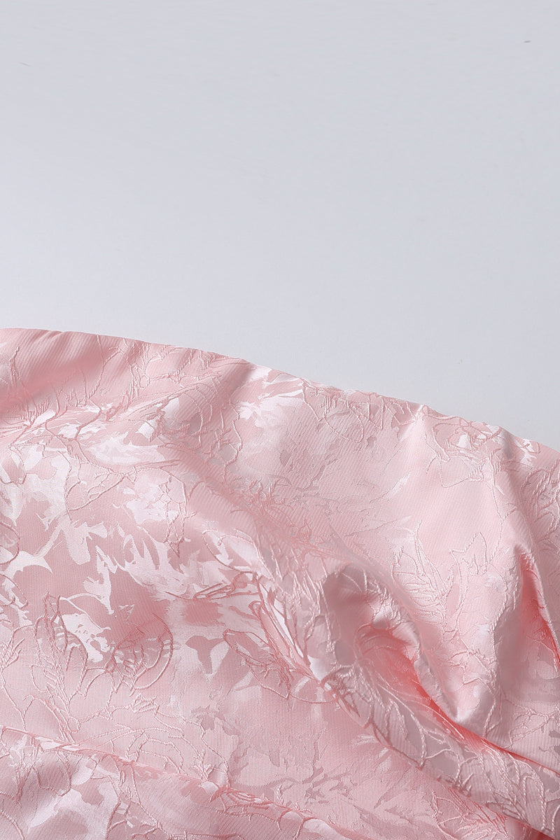 Strapless Pink Floral Short Dress with Side Train