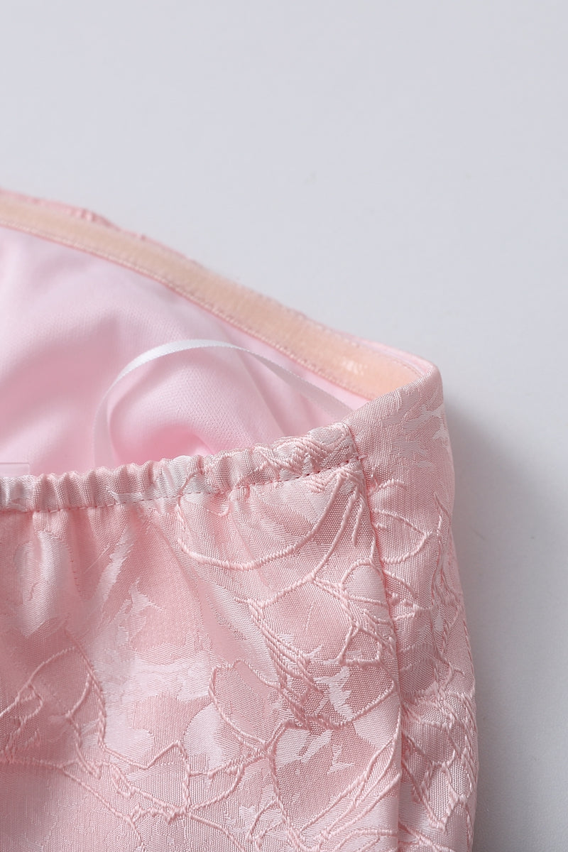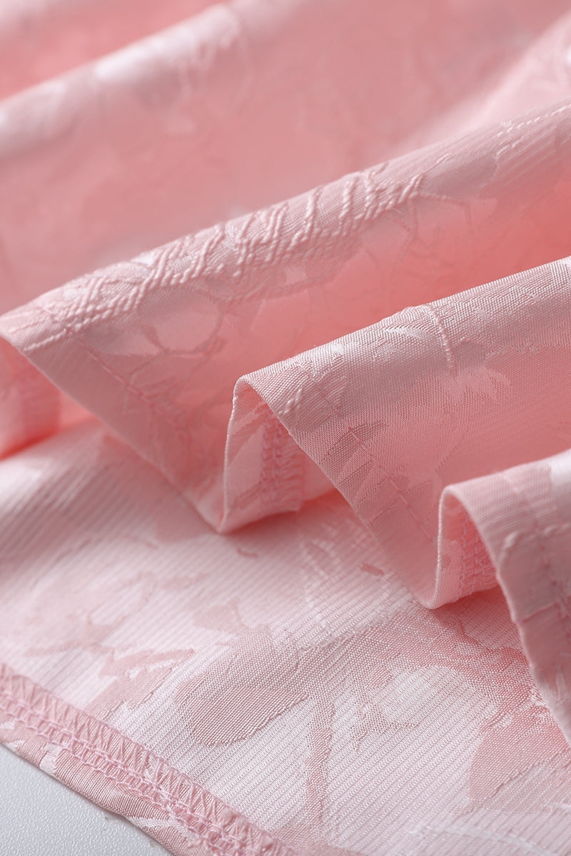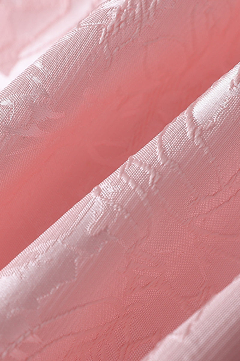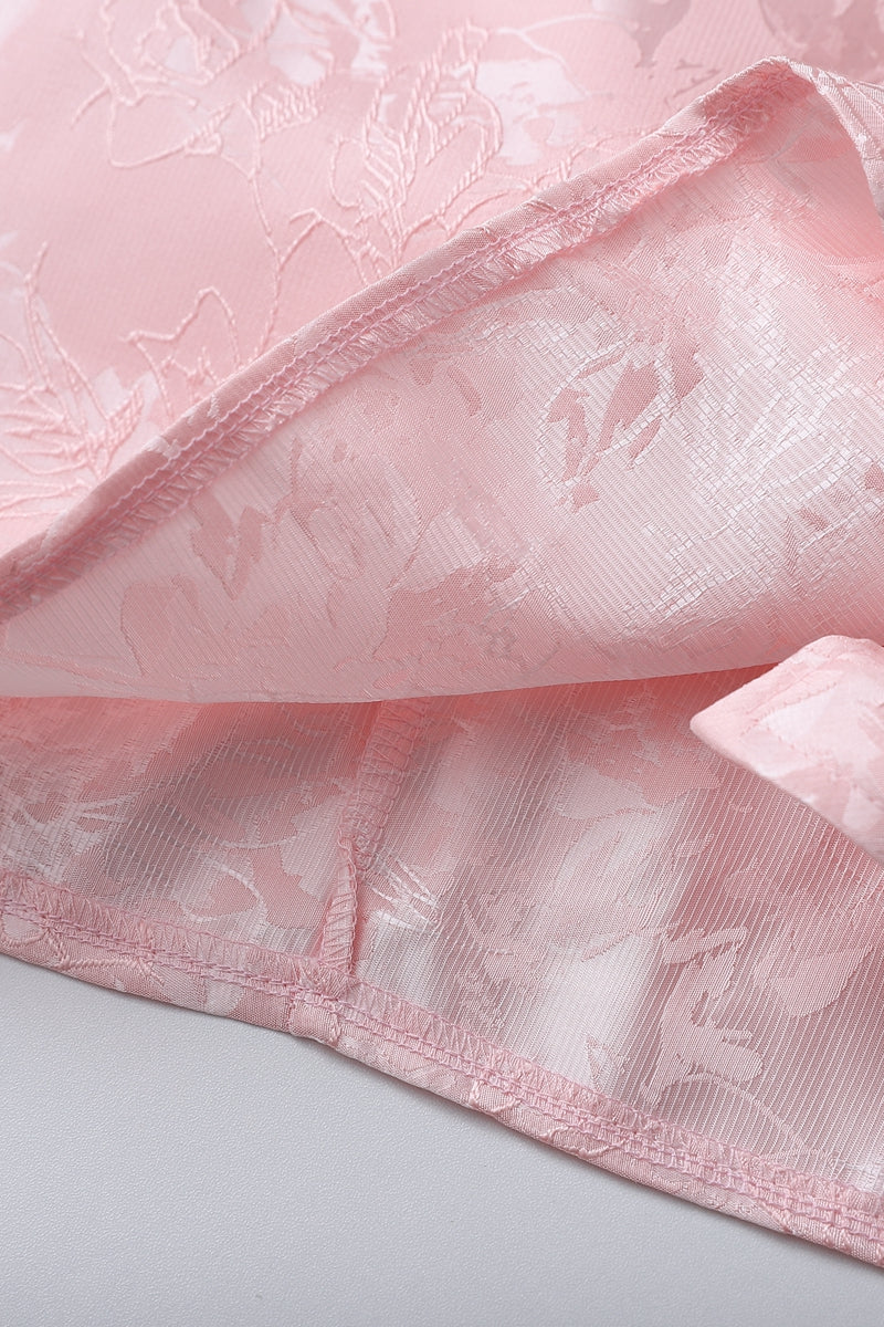 Strapless Pink Floral Short Dress with Side Train
