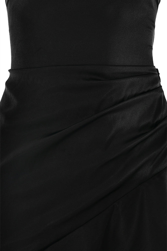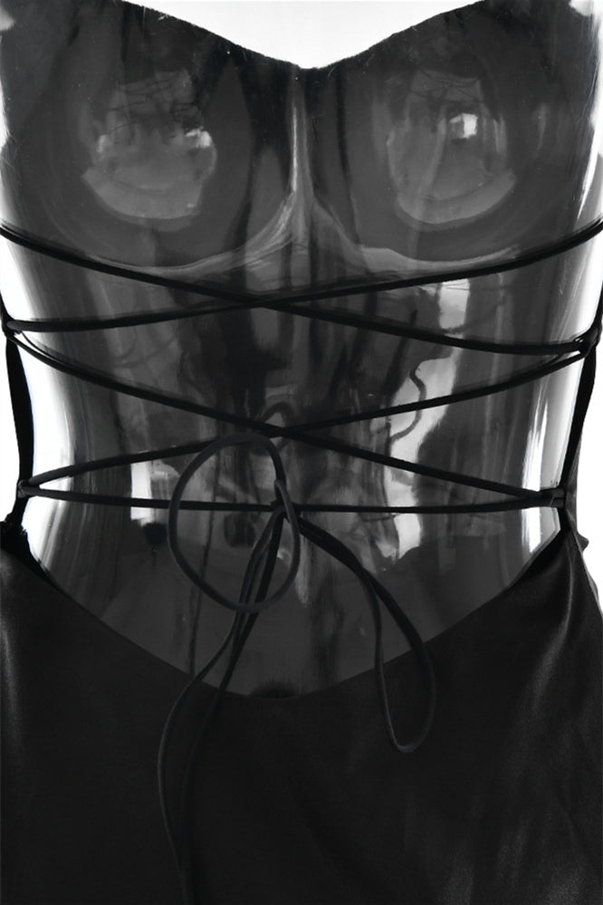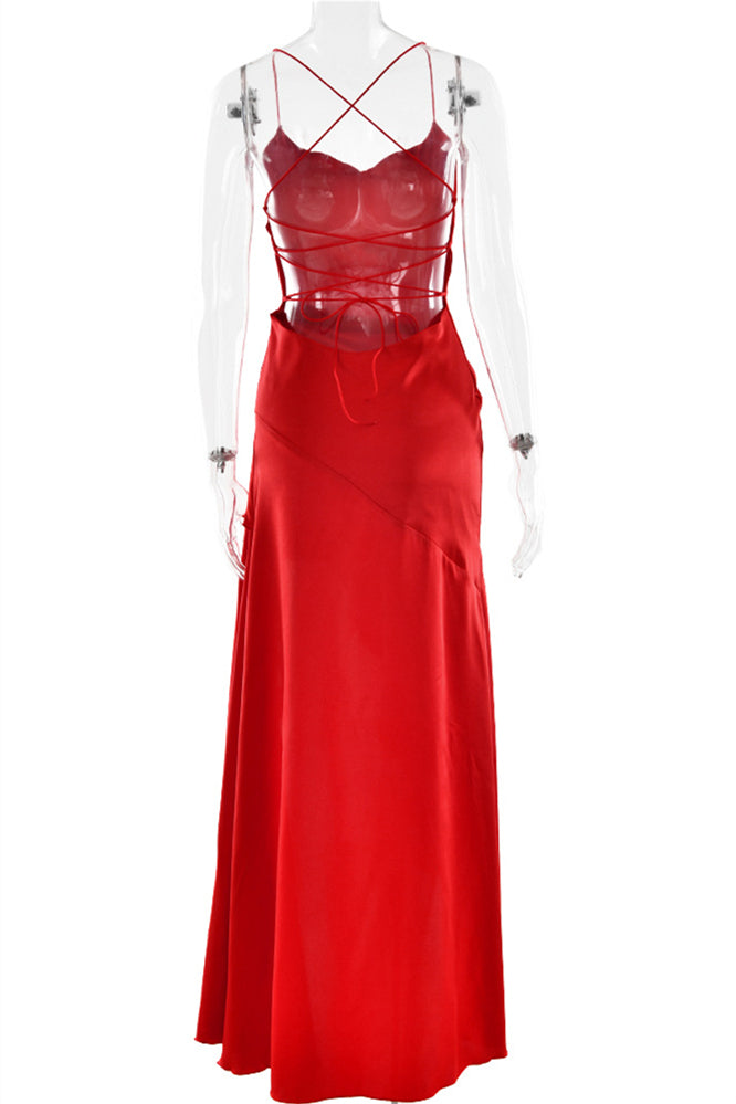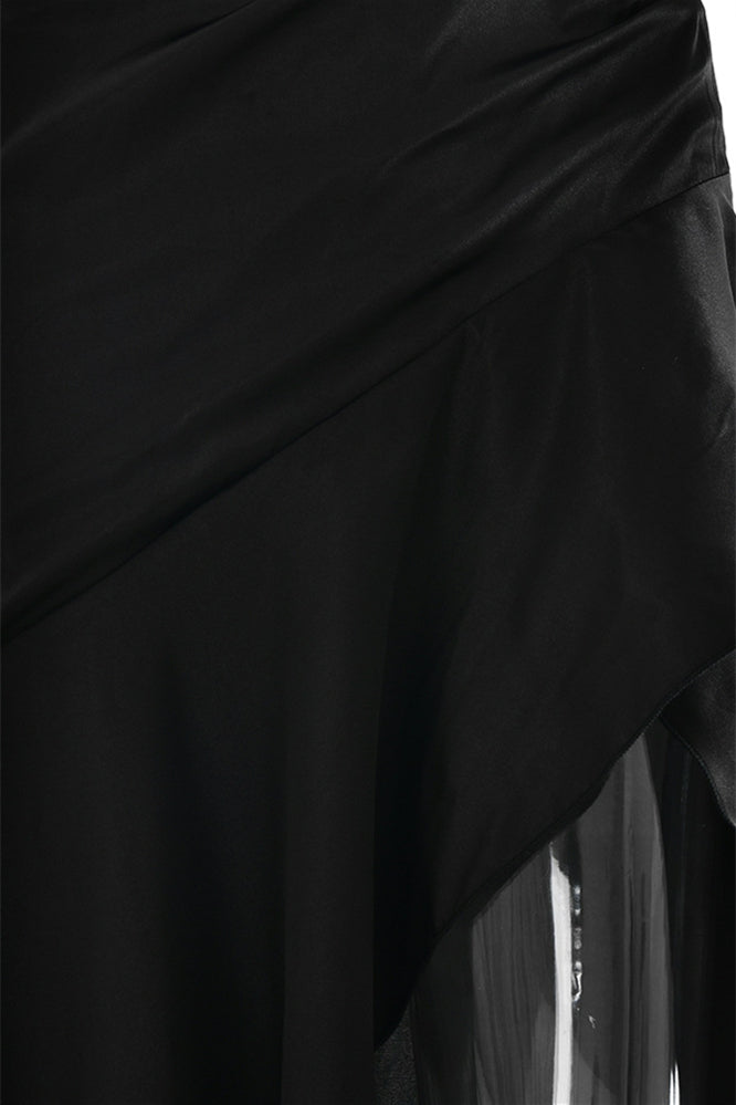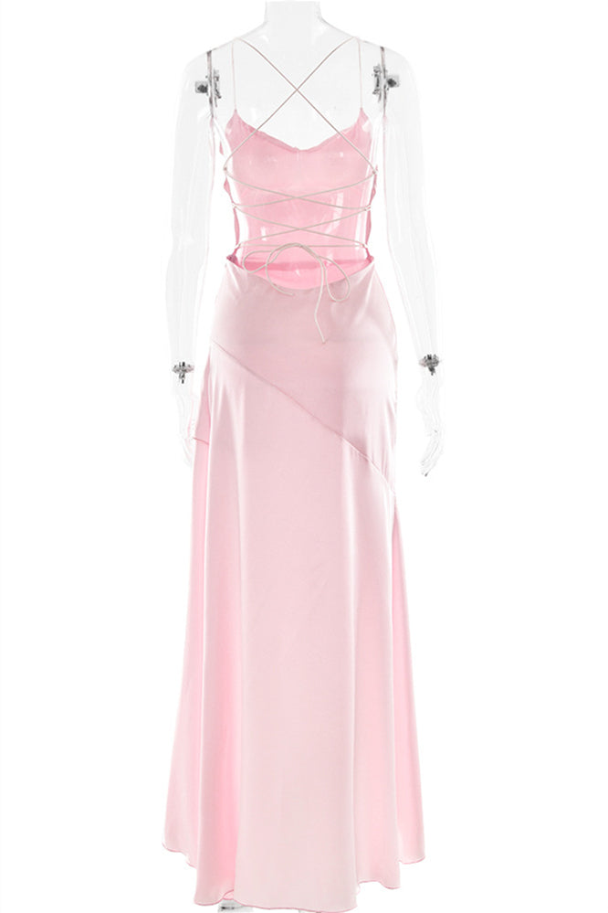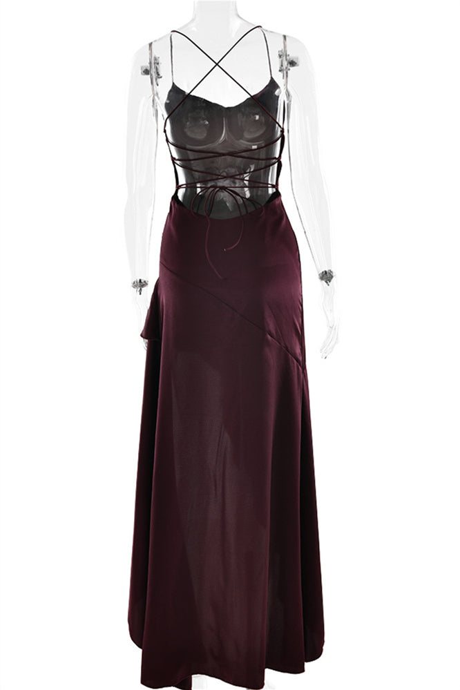 Straps Navy Blue Ruffled Hem Long Dress with Slit