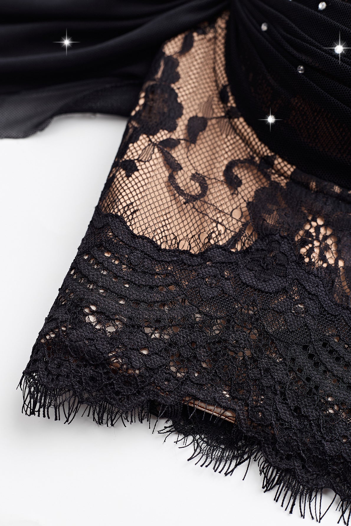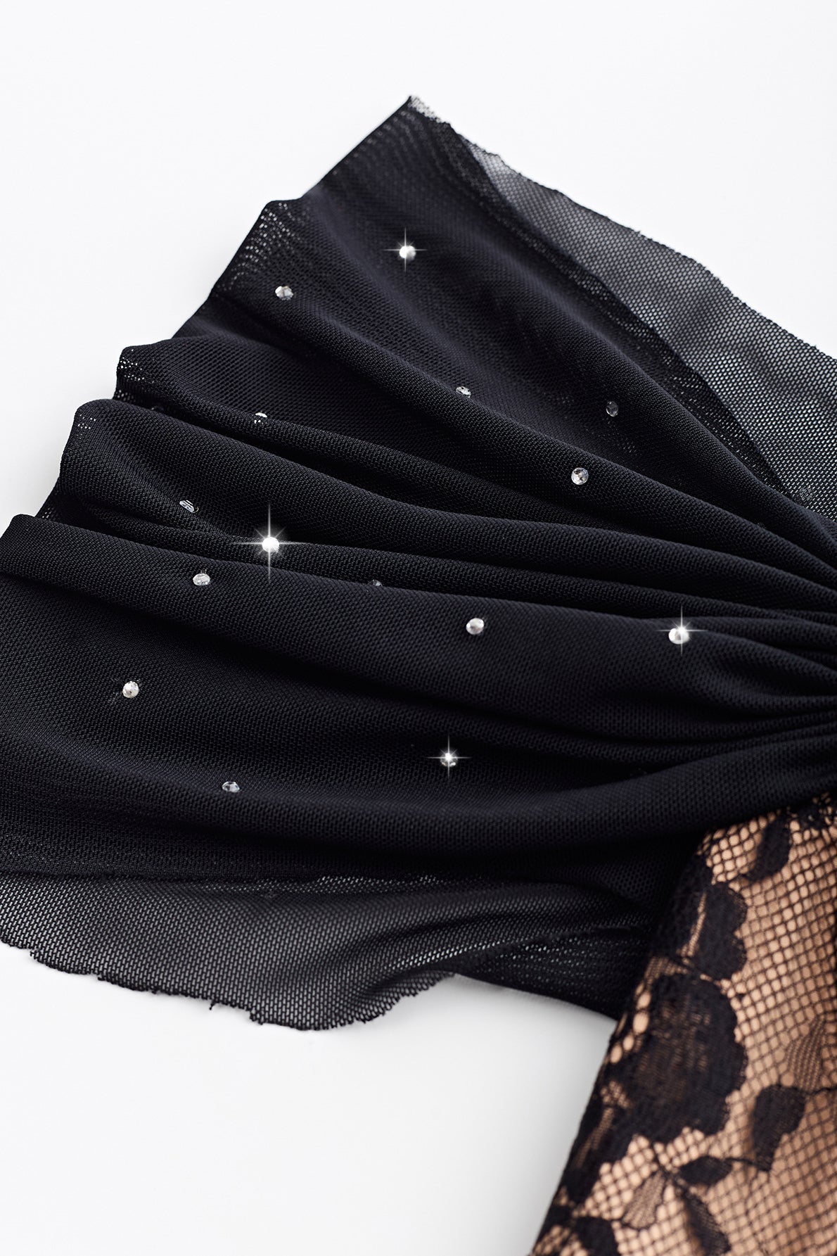 Sweetheart Black Rhinestone Ruched Lace Top