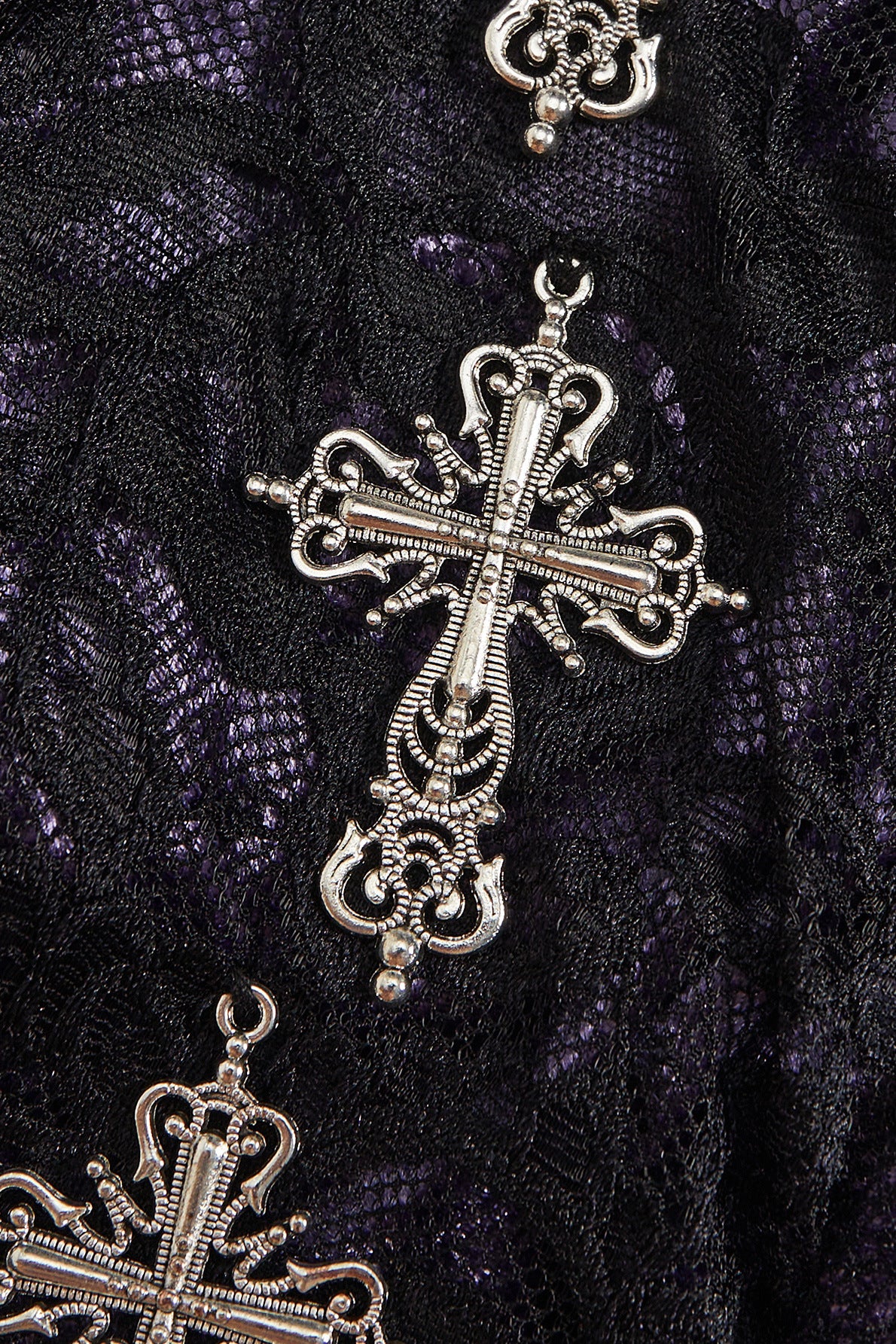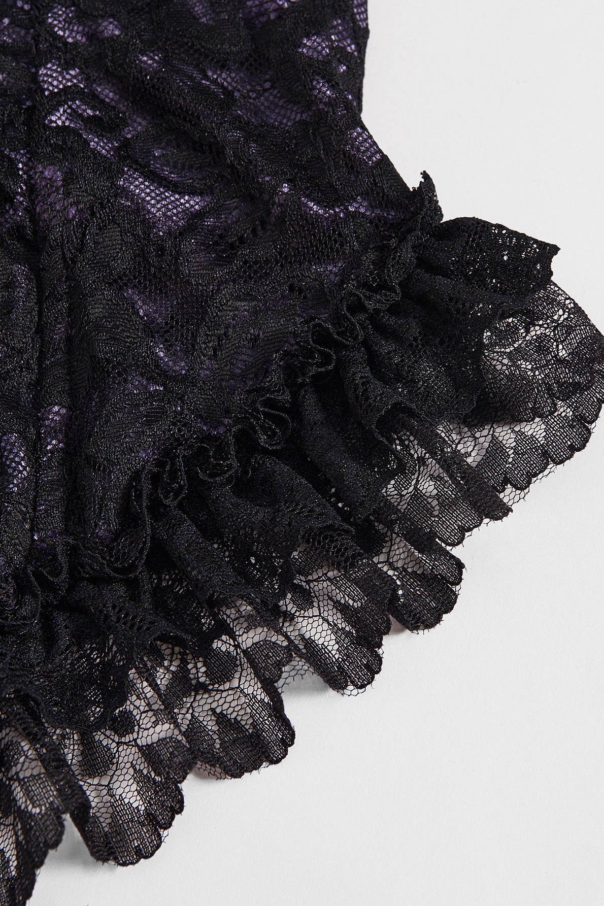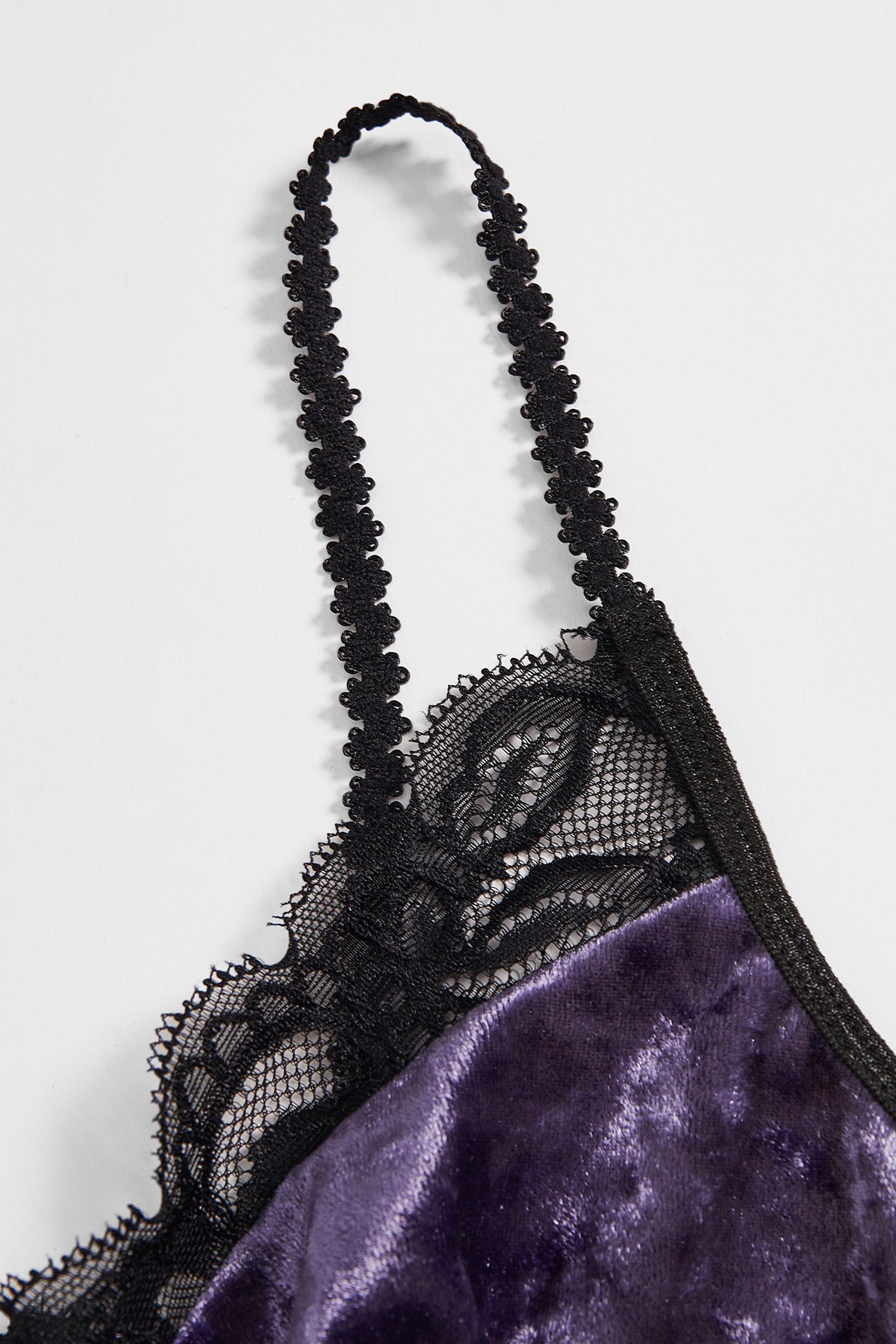 V-neck Black and Purple Cross Lace Splice Velvet Top