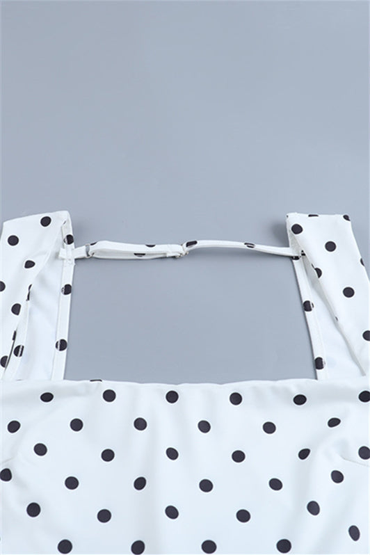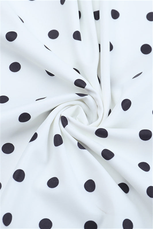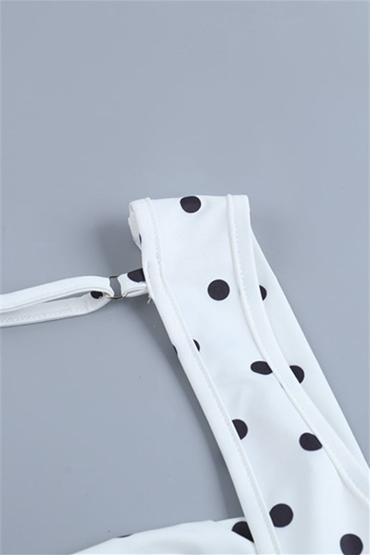 White Polka Dots Open Back Maxi Dress with Bow